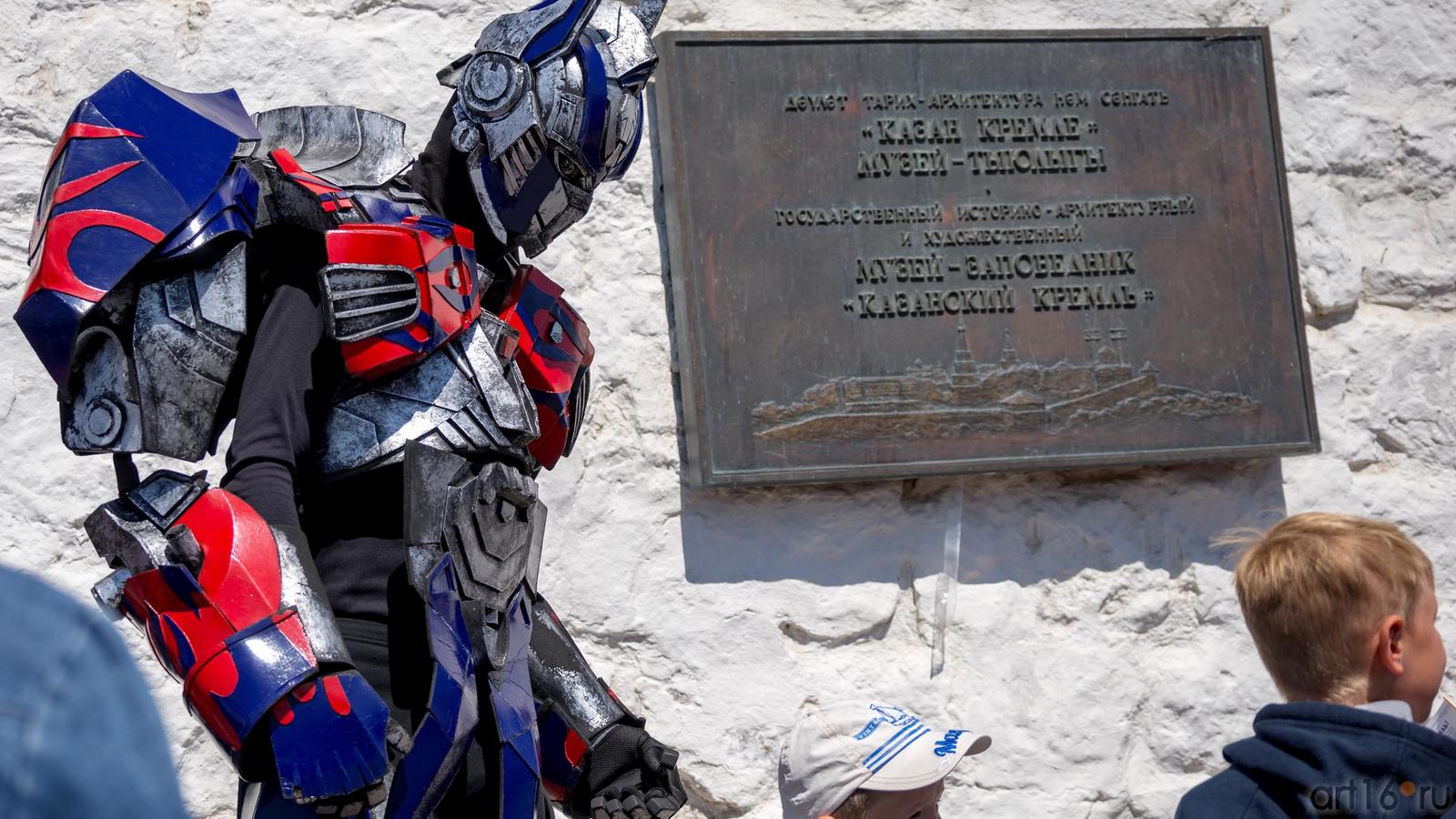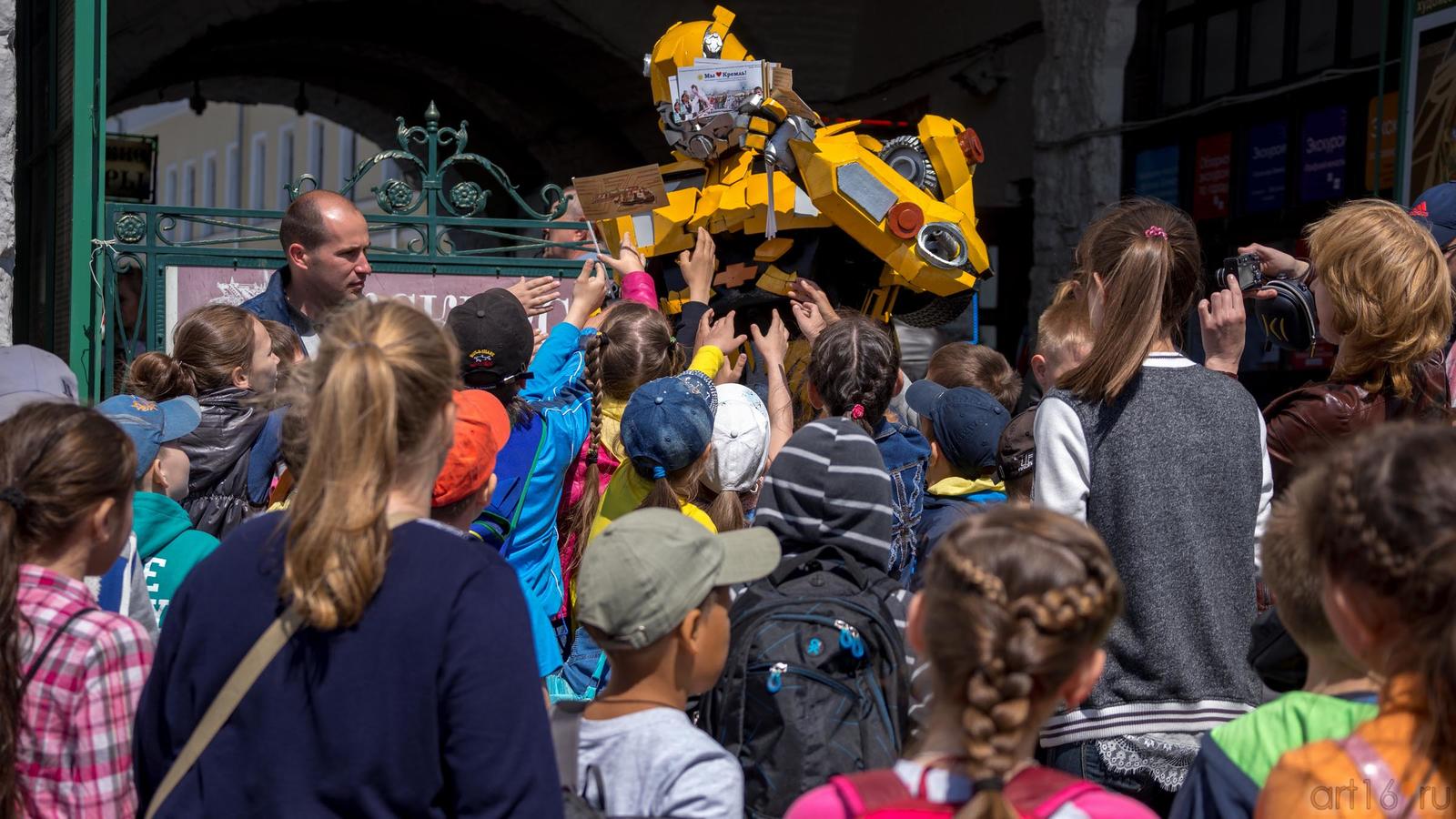 Фото №889542. Art16.ru Photo archiveУ ворот Спасской башни гостей встречают герои мульфильмов-трансформеры.