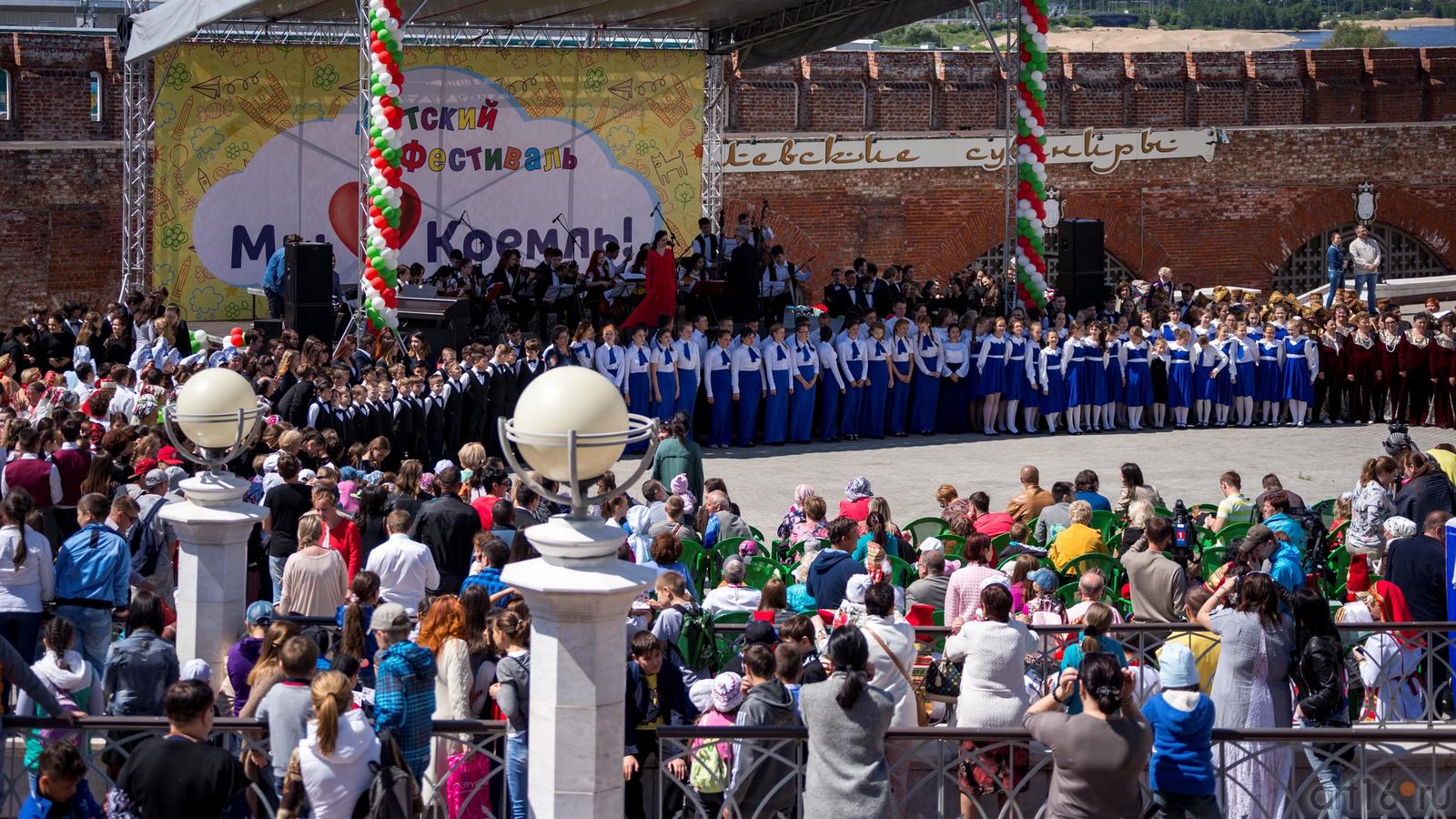Фото №889264. Art16.ru Photo archiveГлавная концертная программа детского фестиваля «Мы любим Кремль» развернулась на площади у подножия мечети Кул Шариф. В программе концерта «Мы разные, но мы - вместе!» - выступления более двадцати детских, студенческих, фольклорных, ветеранских коллективов.