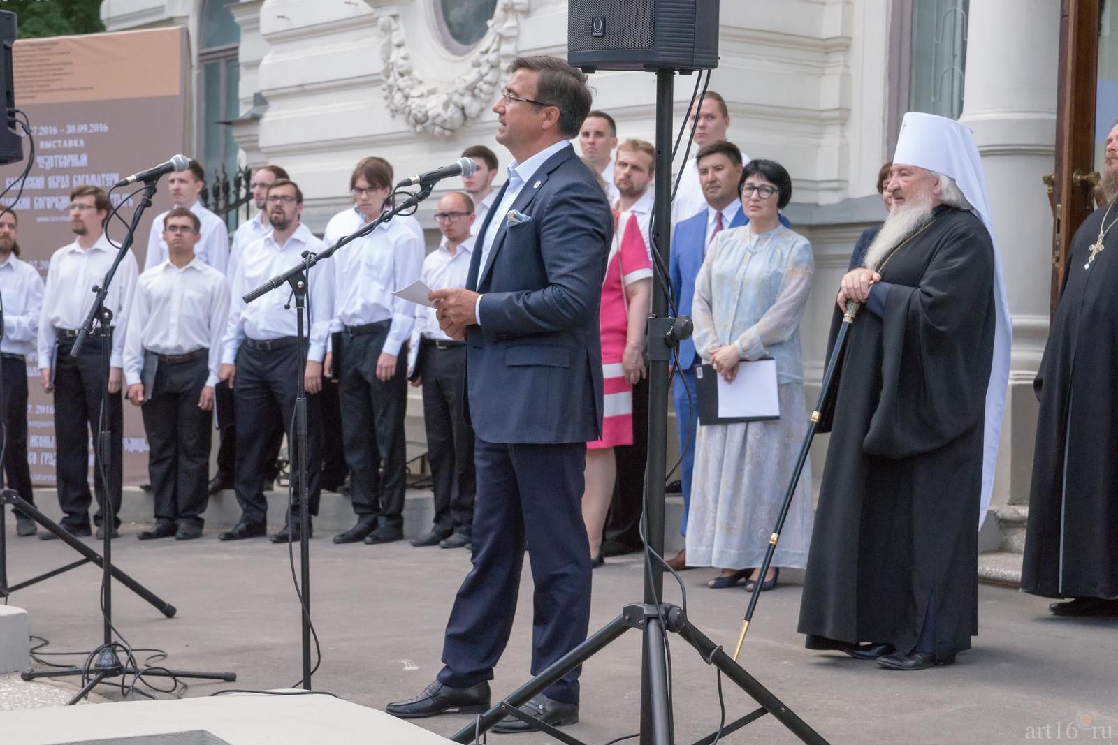 Фото №891742. Art16.ru Photo archiveЦеремония открытия прошла возле Главного здания музея. Митрополит Казанский и Татарстанский Феофан обращаясь к собравшимся с приветственным словом, поздравил всех с открытием грандиозного культурного проекта, над которым работало такое огромное количество специалистов. Отметил его важность и своевременность. Открытие приурочено к празднованию явления Казанской иконы Пресвятой Богородицы (21 июля) и закладке памятного камня на месте возрождаемого Казанского собора в Богородицком монастыре Казани.