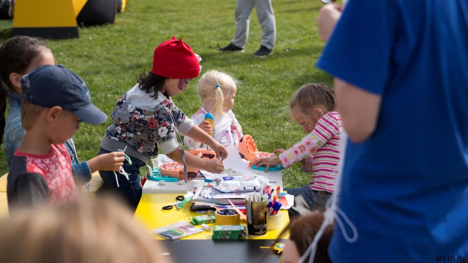 Фото №892156. Art16.ru Photo archiveИгровые зоны для детей разумеется не пустовали. Дети играли в футбол, запускали самодельные бумажные ракеты, предварительно раскрасив их, прыгали на батуте, играли в настольный теннис и др. игры.