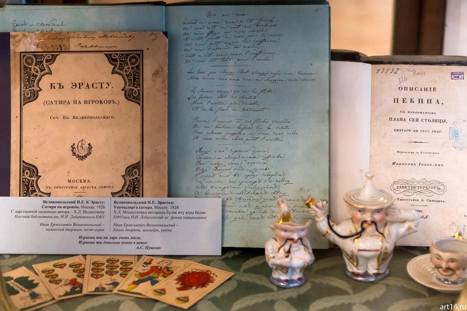 Фото №894778. Великопольские И.Е. К Эрасту: Сатира на игроков, Москва, 1828 (слева)с дарственной надписью автора — Х.Л.Молостову: Иван Ермолаевич Великопольский — казанский дворянин, поэт-игрок ( из фондов Научной библиотеки Лобачевского КФУ