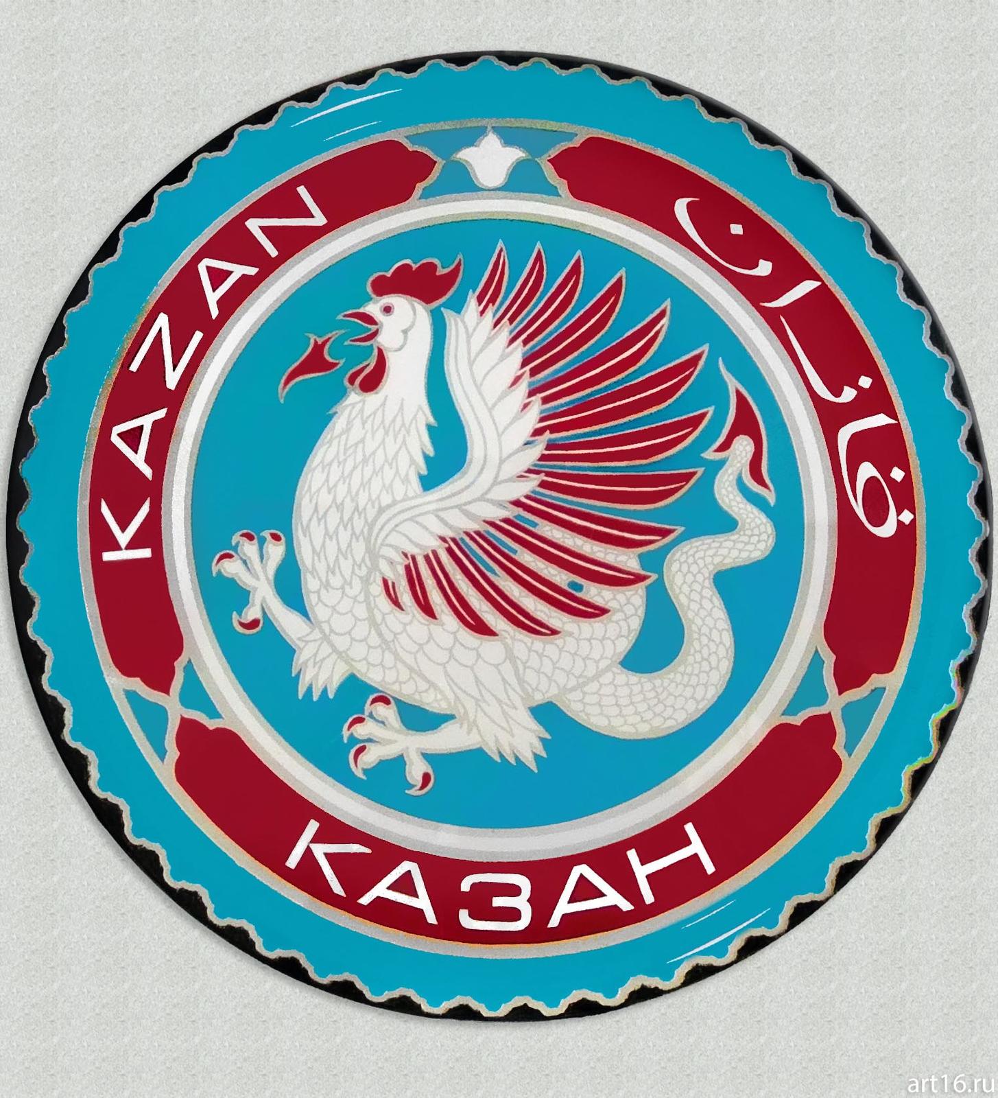 Фото №915094. Рушан Шамсутдинов. Эмблема Казань. Бум. темпера, 28*28, 1991Вячеслав Бибишев на открытии выставки предяставлял Секцию карикатуры СХ РТ. Работ художников-карикатуристов, кроме той, что на фотографии за спиной у Вячеслава я не увидела.