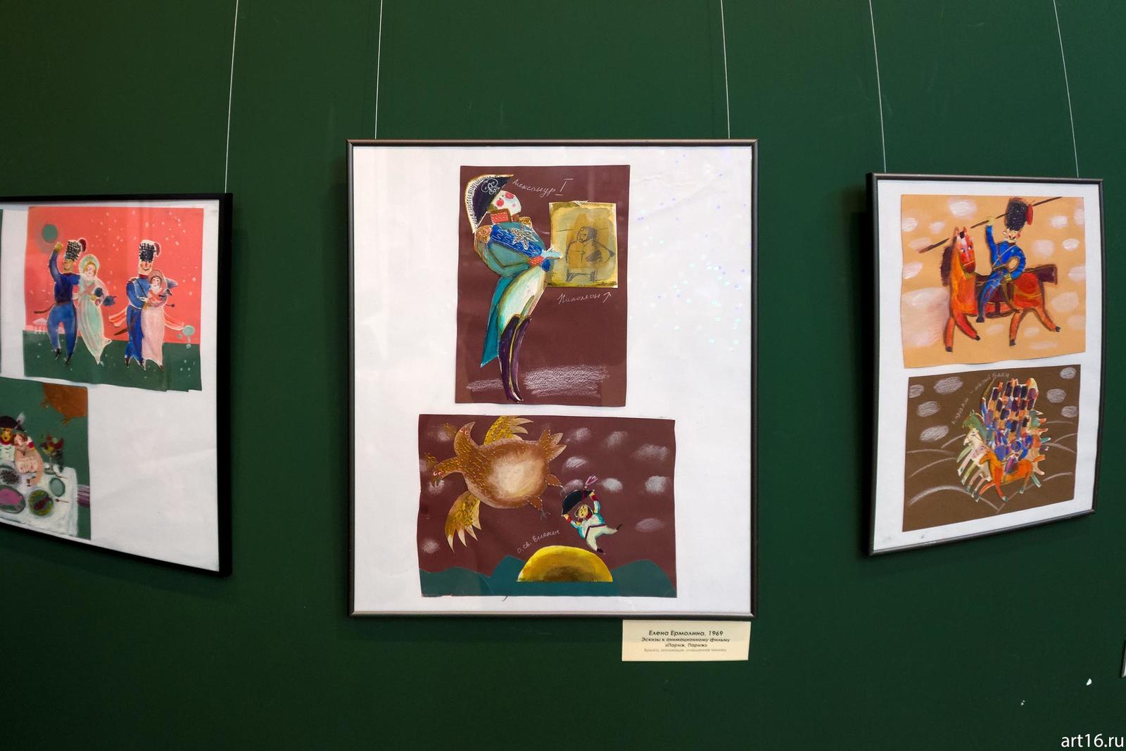 Фото №914974. Елена Ермолина 1969, Милана Королева 1966. Дениска. ВойлокПровожая Год Кино, художники обогатили экспозицию разделом, который знакомит посетителя с кухней мультипликации. На выставке представлены эскизы к мультфильмам.