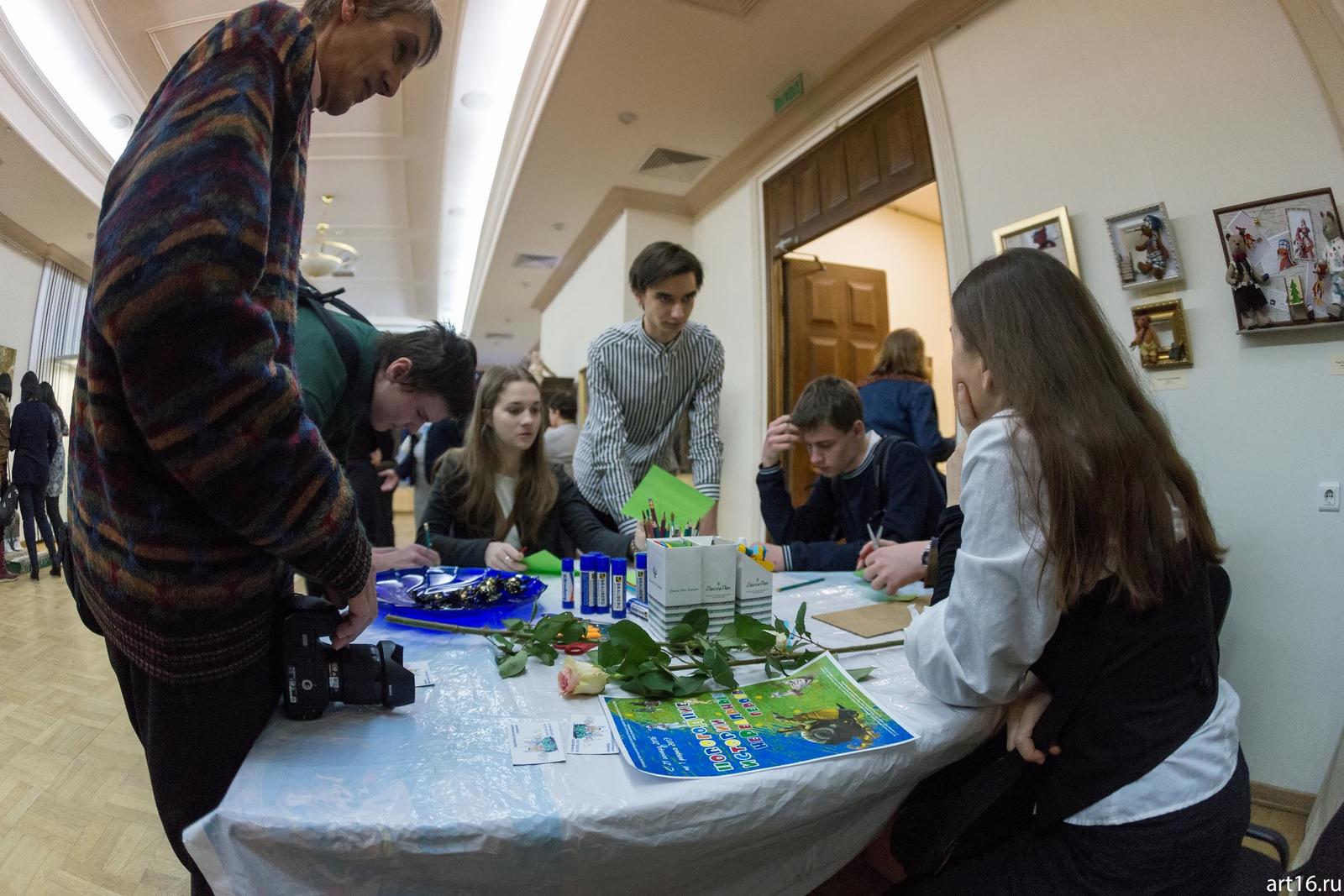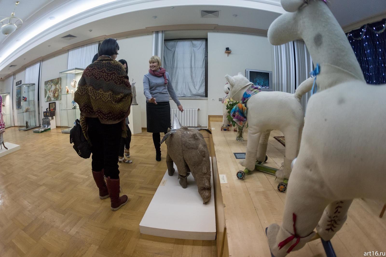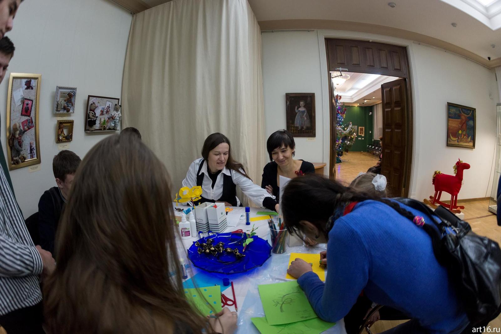 Фото №915474. Творческое занятие на выставке «Новогодние истории нереальных героев»Некоторые экспонаты, изготовленные этими мастерами, кочуют от одного проекта «Кукольных сезонов» к другому, составляя базу, на которой концептуально держится очередной сезон. Как бусинка за бусинкой нанизывается на веревочку, образуя готовое изделие в виде бус, так к базовым экспонатам добавляя новые, мастера создают совершенный, в своем роде, художественный продукт.