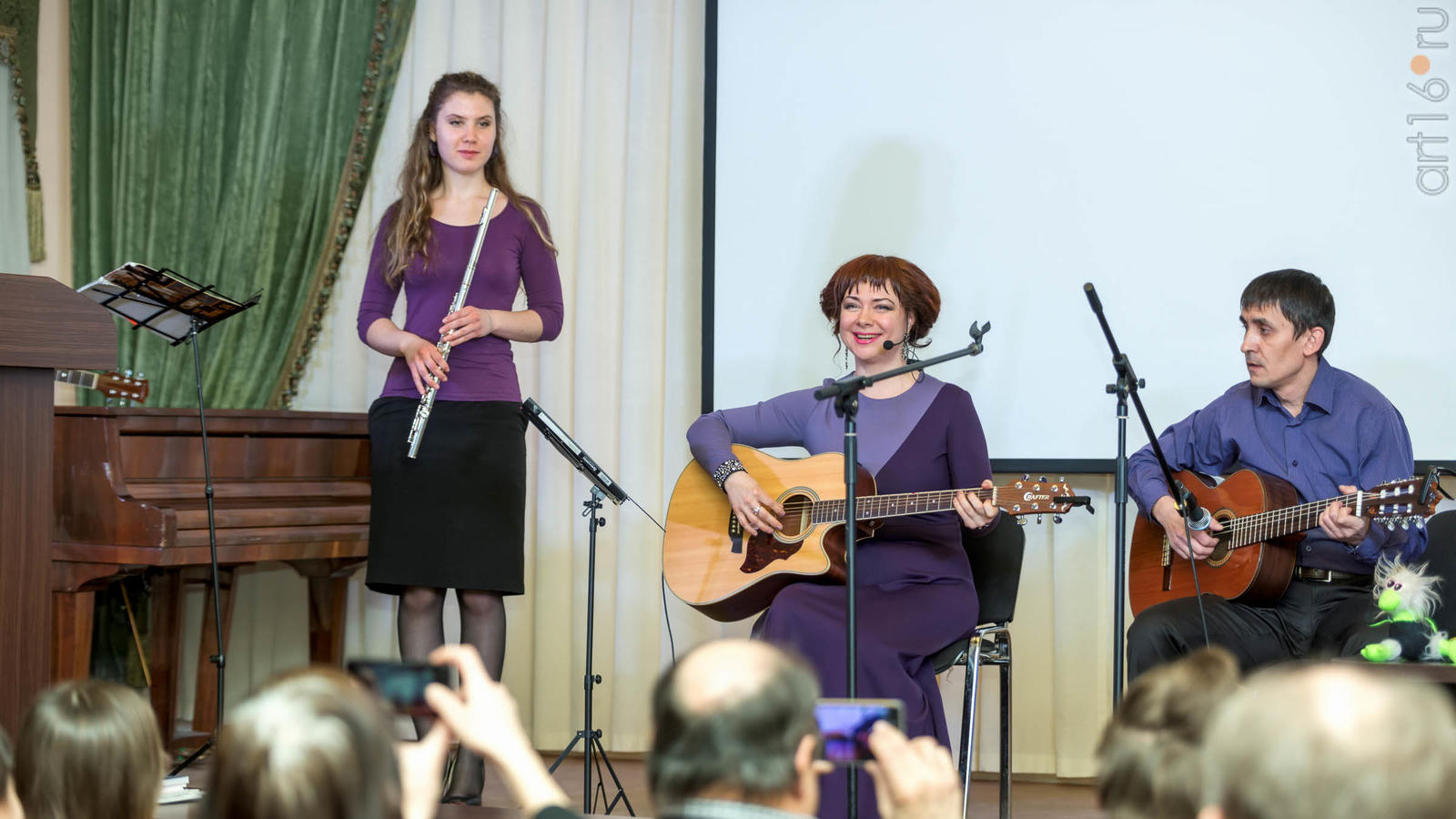 Фото №919070. Дуэт «Бэхет» (Сергей Крайнов, Сания Ибрагимова)В зале была развернута мини-выставка графических работ Анны Акчуриной, автора ЛИТО, художника, педагога, иллюстратора, искусствоведа.