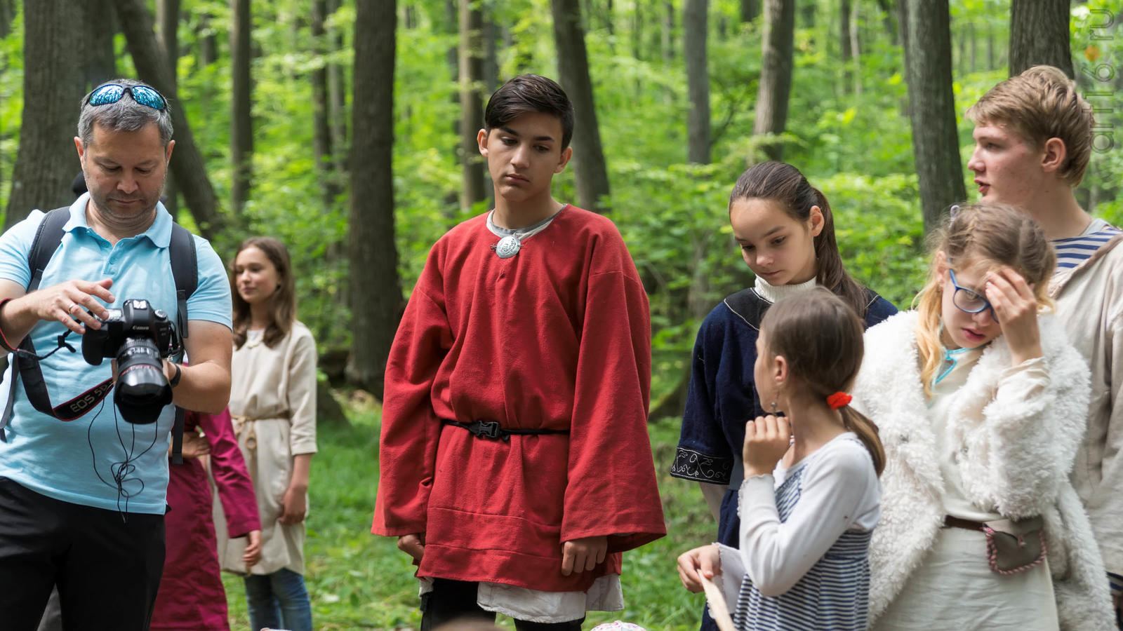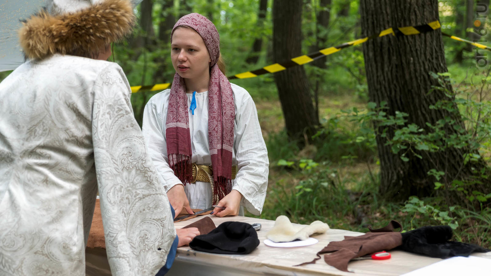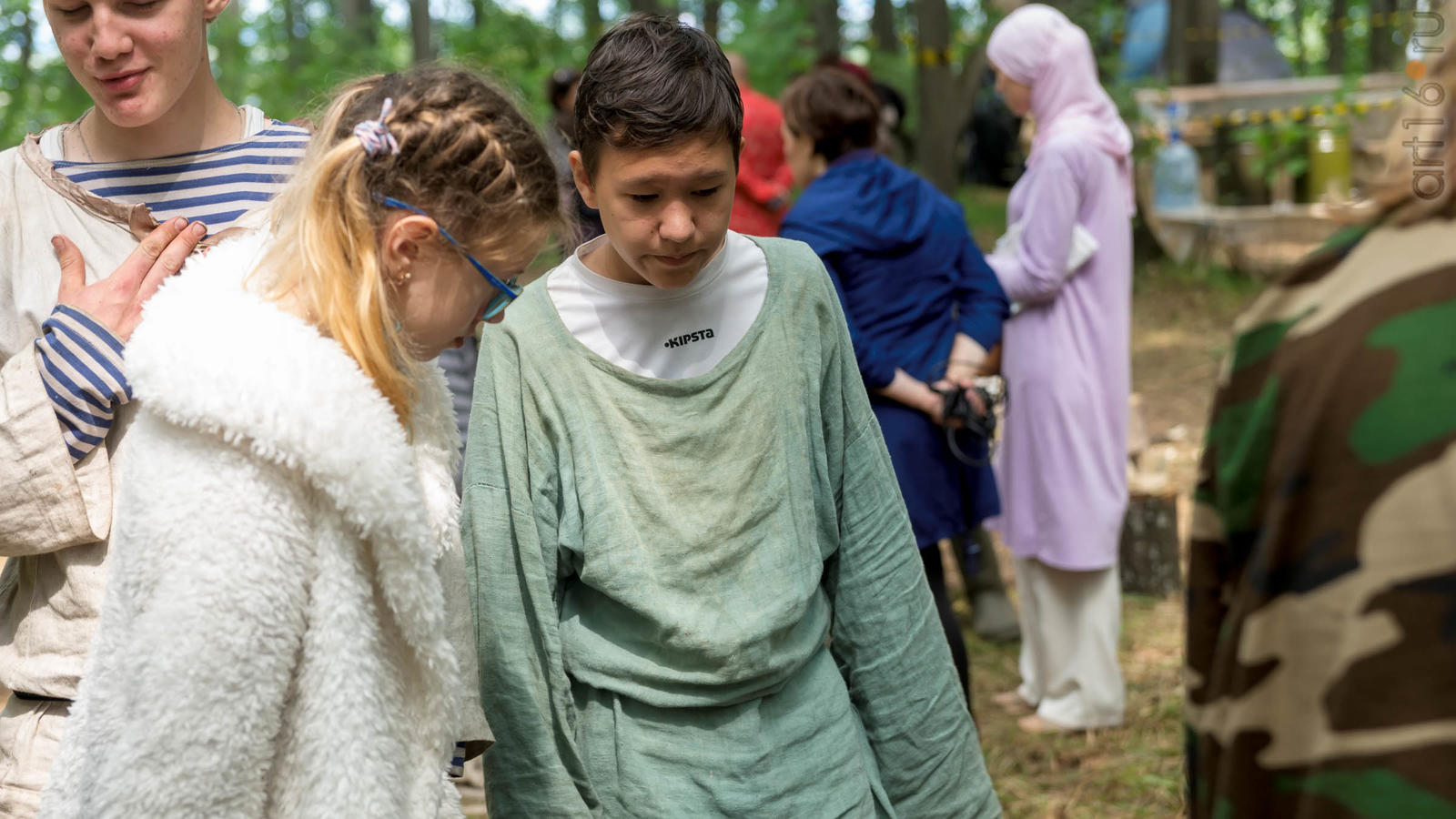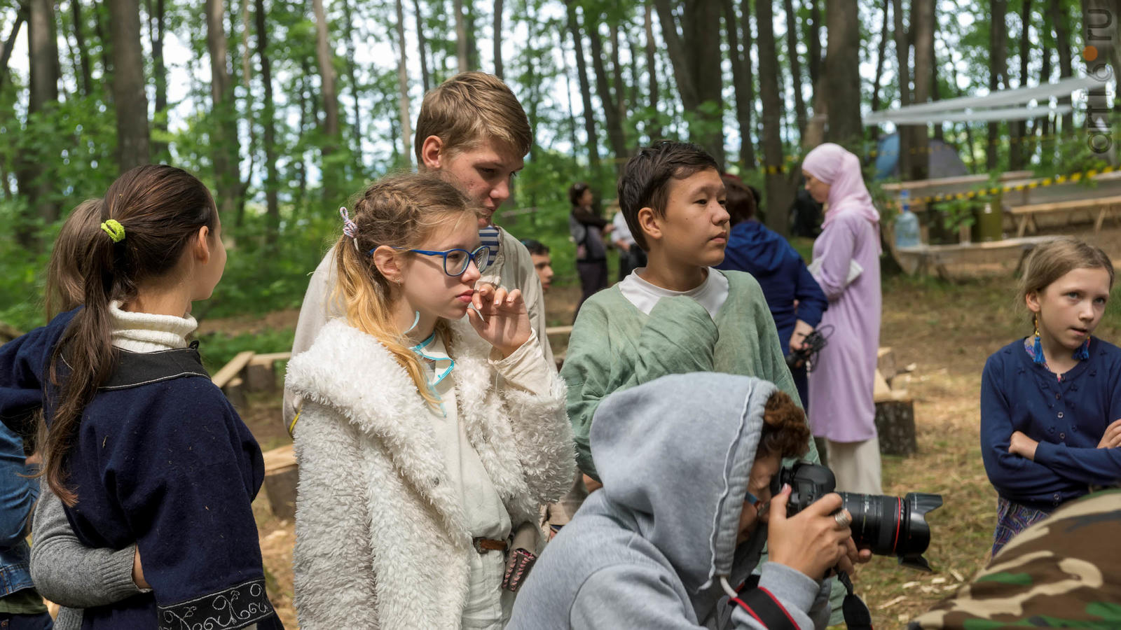 Фото №928853. Art16.ru Photo archiveВсе участники лагеря носят историческую одежду, заранее изготовленную по выложенным в контактной группе участников «Нового поколения» в Интернете. Их повседневная жизнь в лагере полна приключений и труда. Живут они по обозначенным правилам. «Выращивают ферму», изготавливают ювелирные украшения (кольца, браслеты, височные кольца, серьги), делают кожаные пояса, ремни, сумки, рисуют по воде в технике «Эбру». Получают знания по истории родного края.