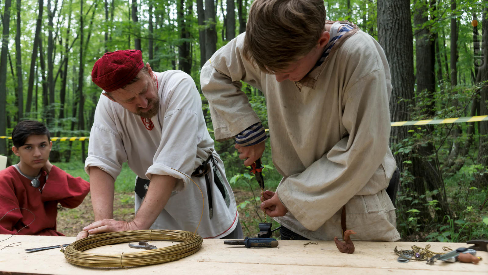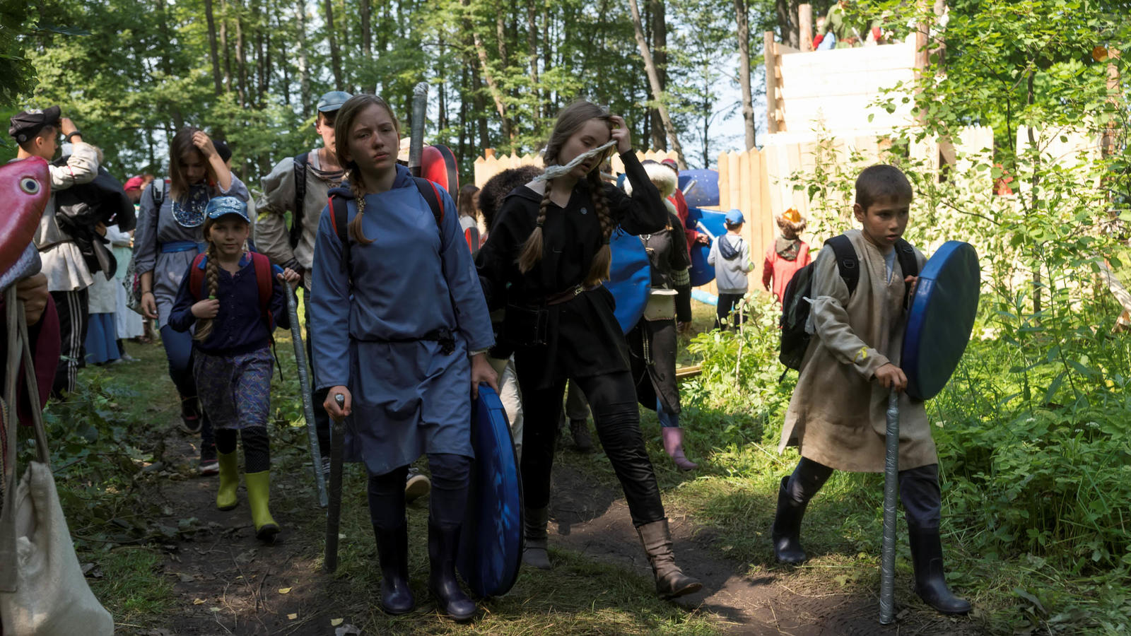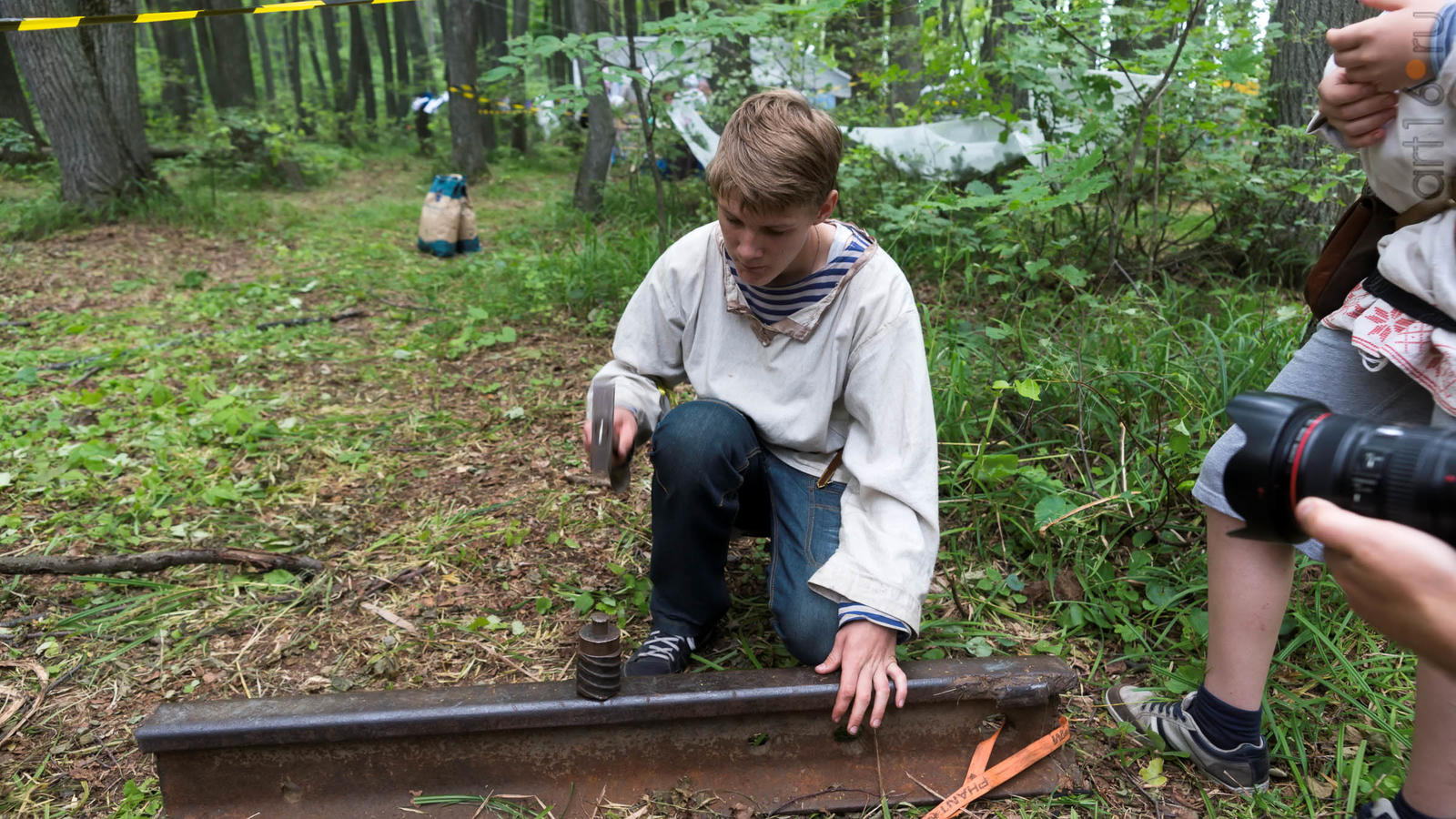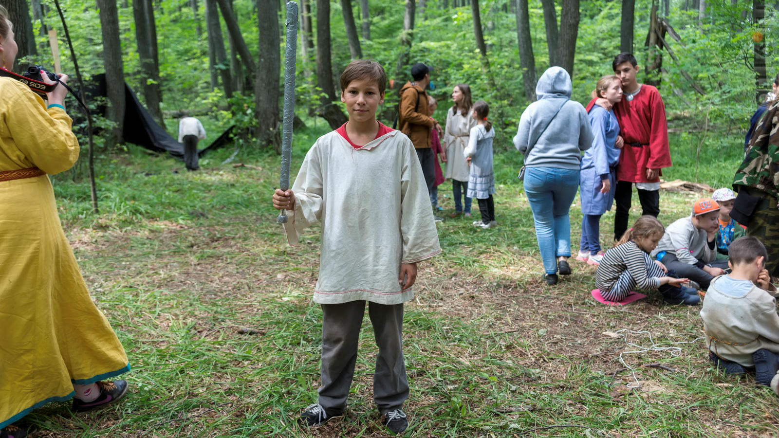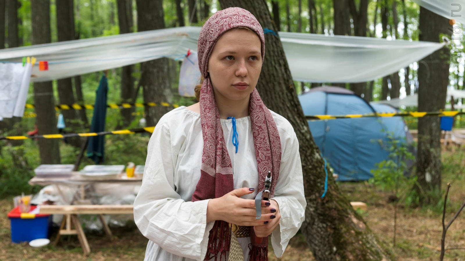 Фото №928853. Art16.ru Photo archiveВсе участники лагеря носят историческую одежду, заранее изготовленную по выложенным в контактной группе участников «Нового поколения» в Интернете. Их повседневная жизнь в лагере полна приключений и труда. Живут они по обозначенным правилам. «Выращивают ферму», изготавливают ювелирные украшения (кольца, браслеты, височные кольца, серьги), делают кожаные пояса, ремни, сумки, рисуют по воде в технике «Эбру». Получают знания по истории родного края.