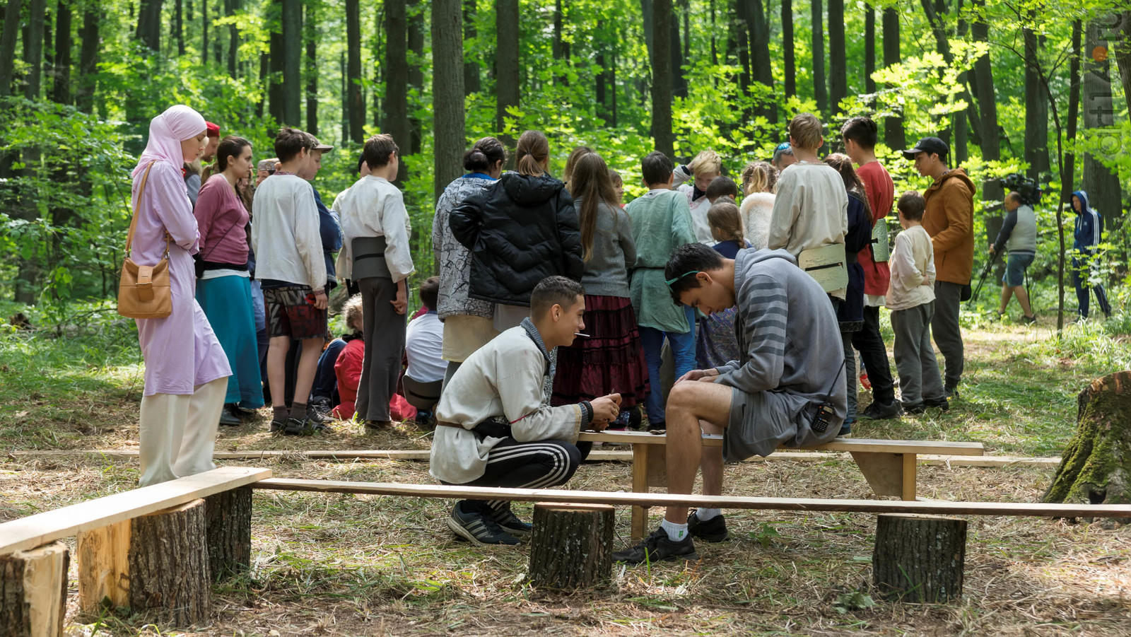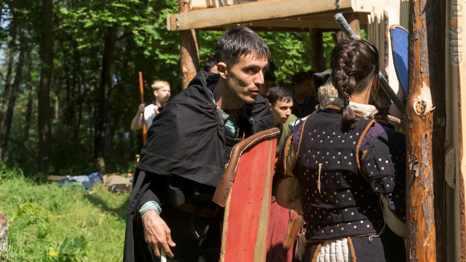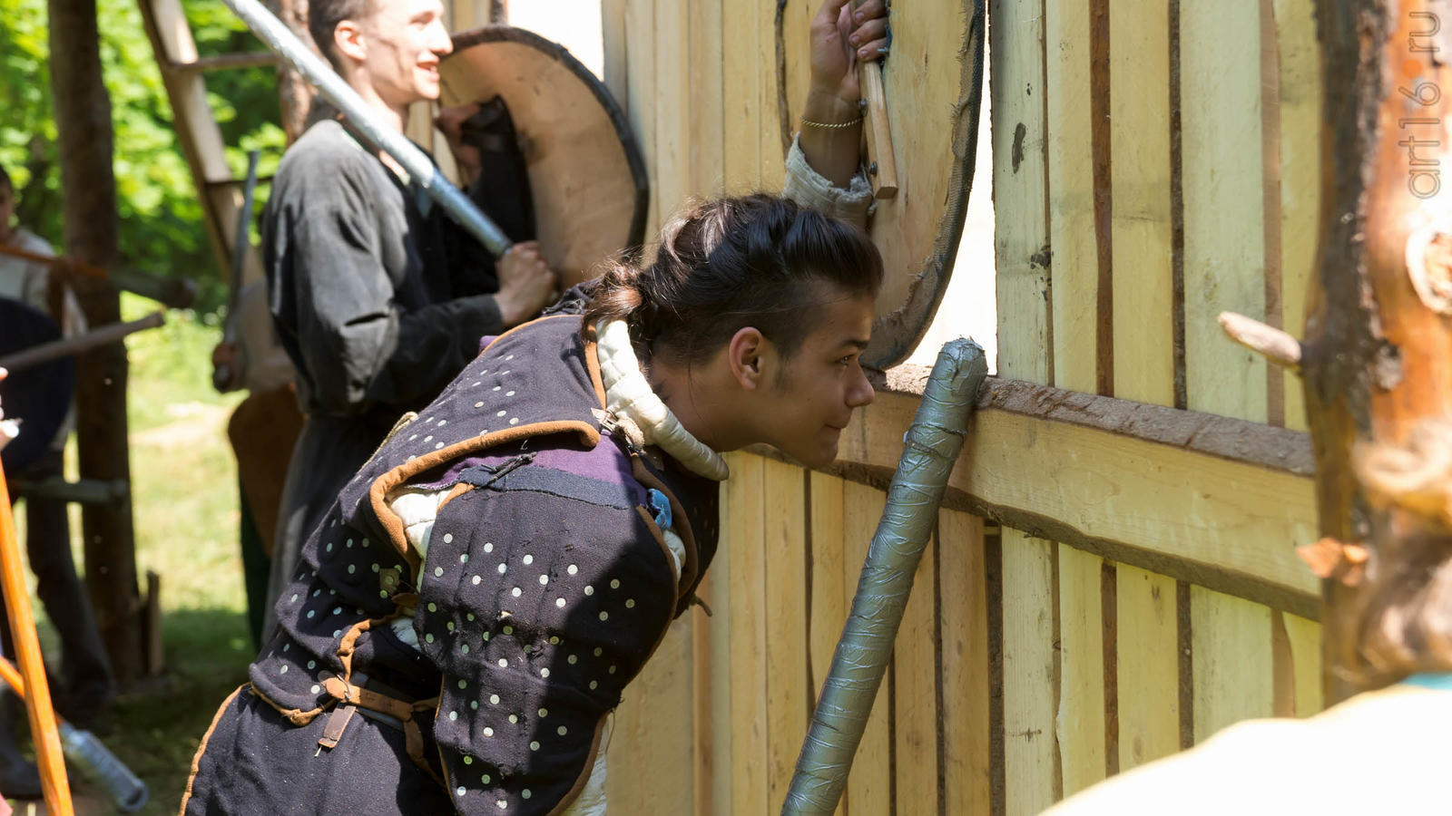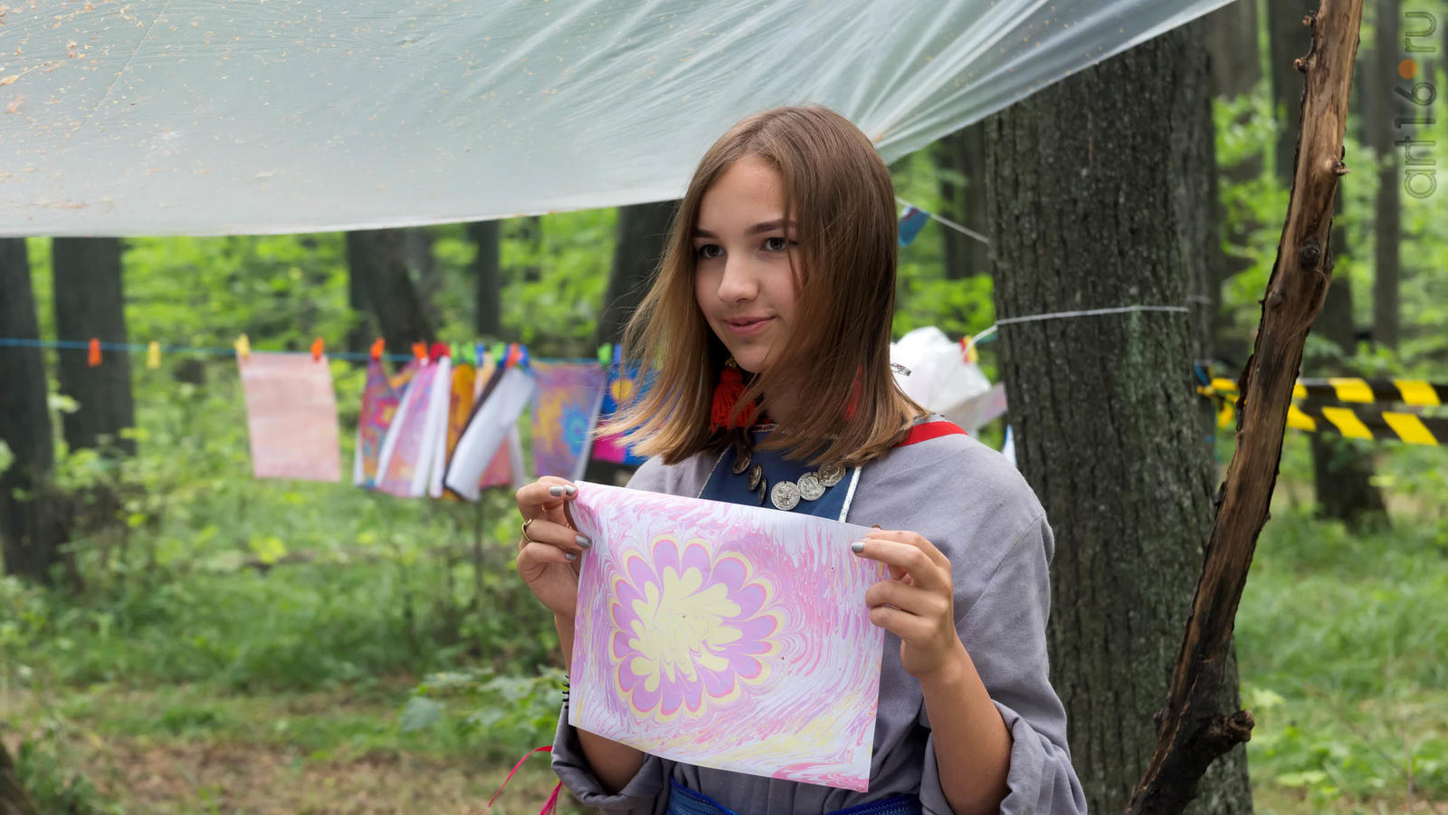 Фото №928853. Art16.ru Photo archiveВсе участники лагеря носят историческую одежду, заранее изготовленную по выложенным в контактной группе участников «Нового поколения» в Интернете. Их повседневная жизнь в лагере полна приключений и труда. Живут они по обозначенным правилам. «Выращивают ферму», изготавливают ювелирные украшения (кольца, браслеты, височные кольца, серьги), делают кожаные пояса, ремни, сумки, рисуют по воде в технике «Эбру». Получают знания по истории родного края.