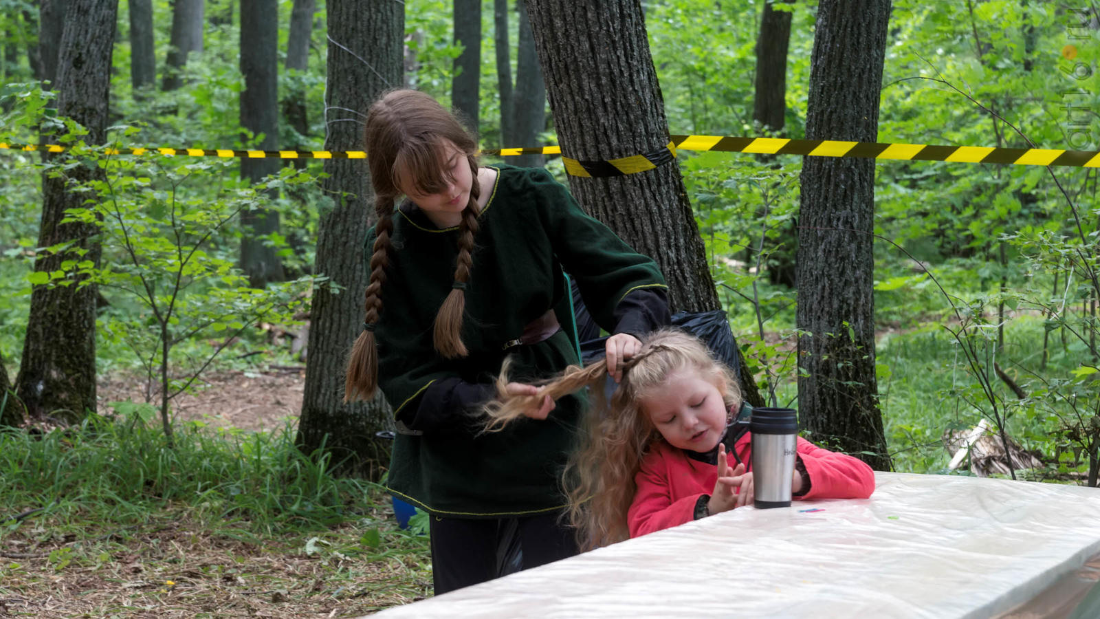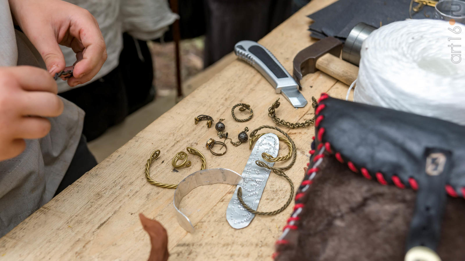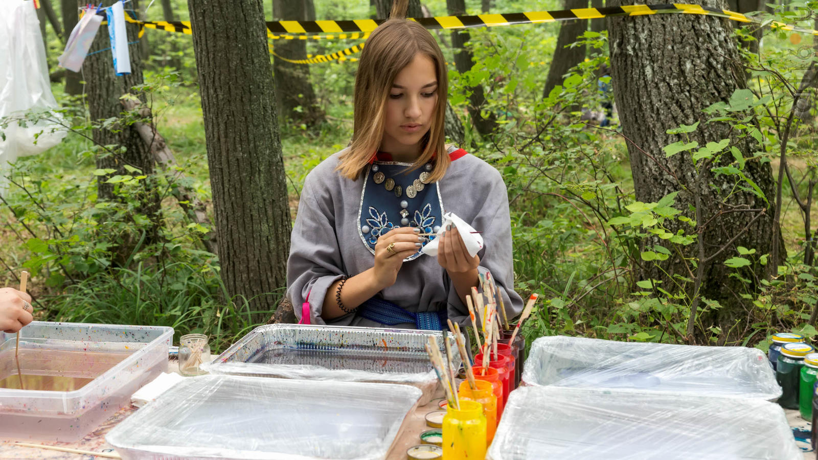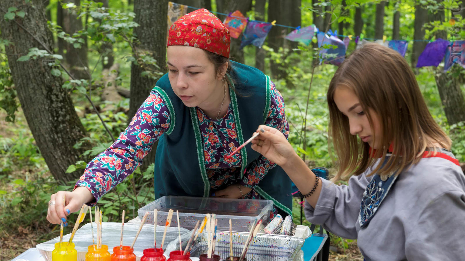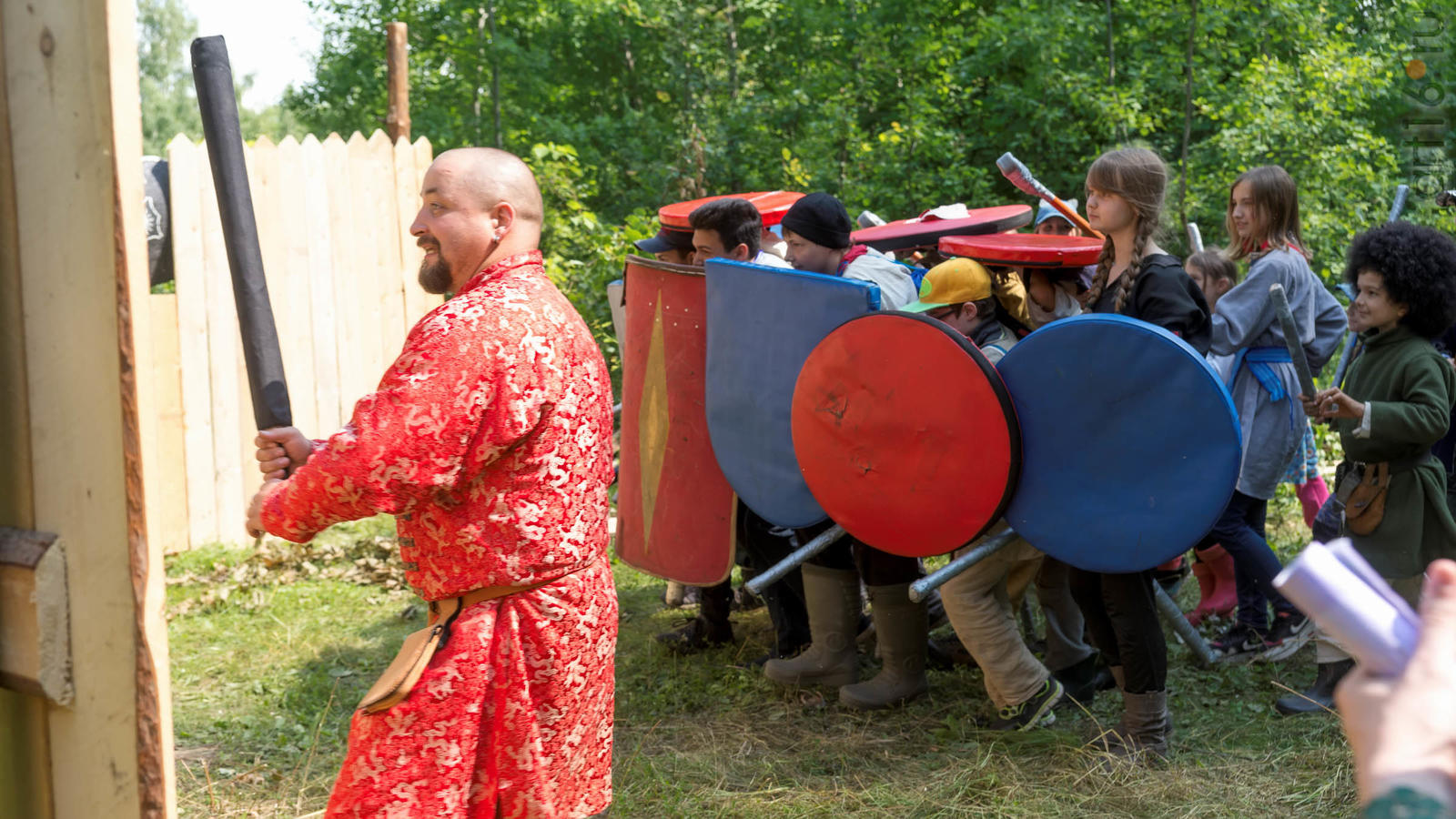 Фото №928853. Art16.ru Photo archiveВсе участники лагеря носят историческую одежду, заранее изготовленную по выложенным в контактной группе участников «Нового поколения» в Интернете. Их повседневная жизнь в лагере полна приключений и труда. Живут они по обозначенным правилам. «Выращивают ферму», изготавливают ювелирные украшения (кольца, браслеты, височные кольца, серьги), делают кожаные пояса, ремни, сумки, рисуют по воде в технике «Эбру». Получают знания по истории родного края.