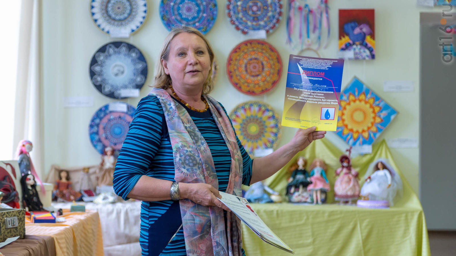 Фото №942767. Art16.ru Photo archiveГл. редактор сайта "Культура и искусство в Республики Татарстан" Елена Сунгатова поделилась своими впечатлениями от творческих работ, экспонируемых на выставке. Экспозиция получилась очень живой и душевной. Здесь представлены живопись, графика, стринг-арт, коллаж, творческие куклы, фотографии, арт-объекты. Такое многообразие техник, мастерство исполнения и добрая творческая атмосфера не могут оставить равнодушным посетителей галереи.