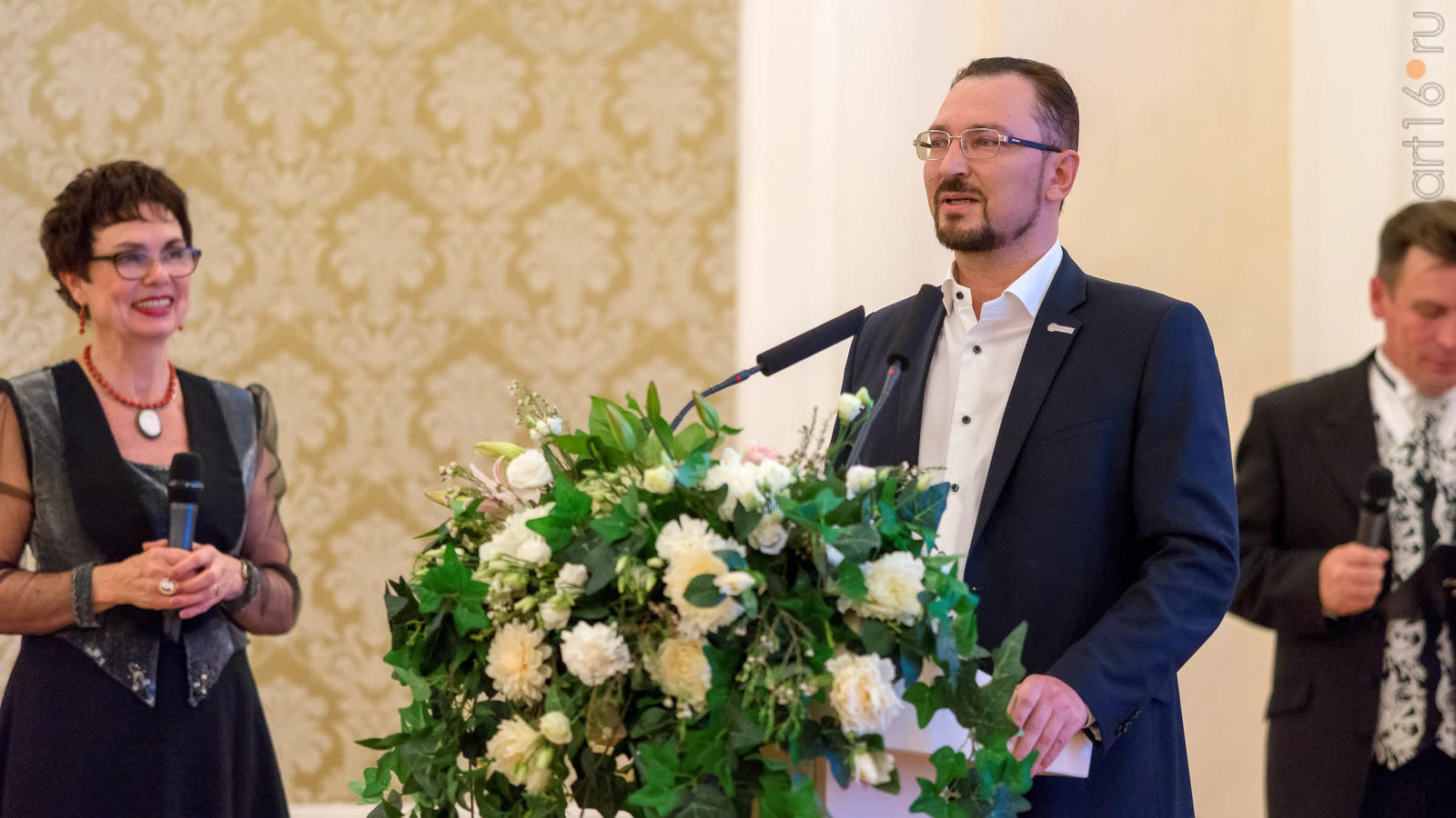 Фото №946541. Эдуард Хайруллин фотовыставка "Двое"Из галереи "Окно" публика плавно переместилась на второй этаж в колонный зал Ратуши. В ожидании церемонии гости мероприятия всецело отдались общению.