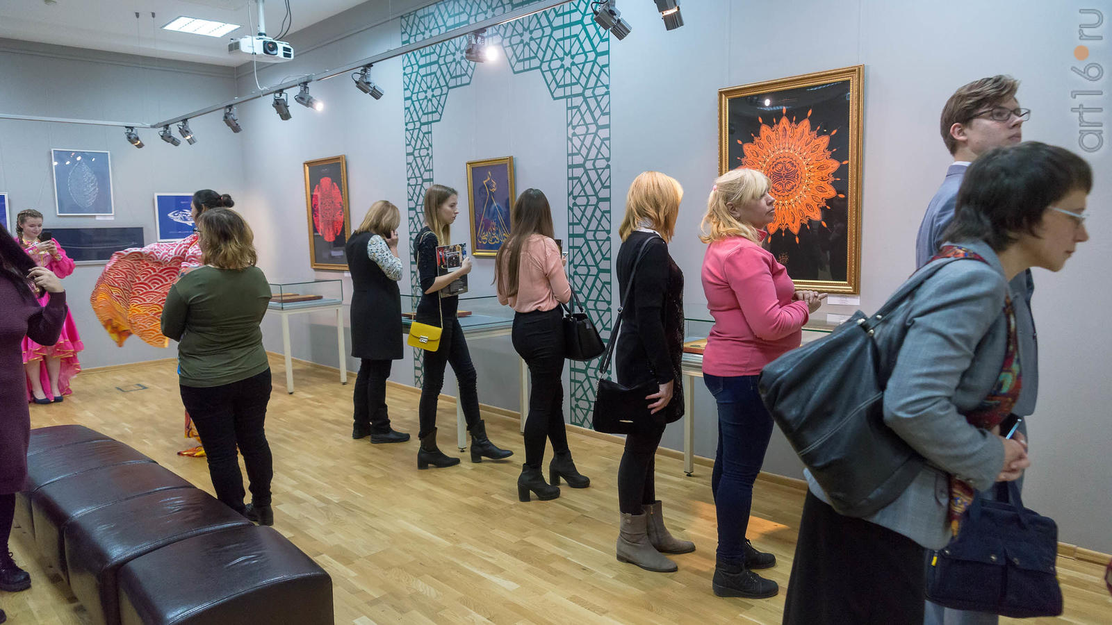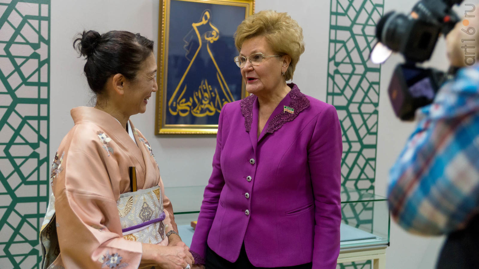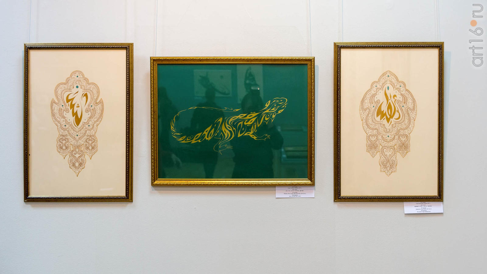 Фото №947236. Art16.ru Photo archiveВ экспозиции выставки представлены работы японского искусствоведа и художника, члена международной группы иконописцев госпожи Хироку Кодзуки и работы известного в мире каллиграфа — Заслуженного художника Российской Федерации, Народного художника и заслуженного деятеля искусств Республики Татарстан, лауреата Государственной премии РТ им.Г.Тукая Владимира Попова, создавшего тугры японских деятелей, среди которых тугры Императора и Императрицы Японии, Премьер-министра Синдзо Абэ; японская серия работ казанской художницы - мастера по коже, кандидата химических наук Ольги Черкасовой и каллиграфа Розы Хузиной.