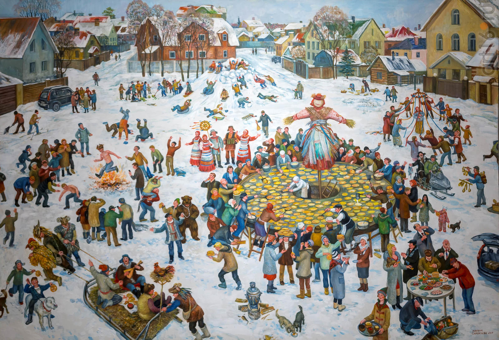 Фото №947389. Самакаева Марина Владимировна (Казань). МАСЛЕНИЦА. холст, масло 2017Проект«Красные ворота /Против течения» рассчитан на 20 лет. В 2018 году художникам для осмысления и воплощения были заданы 10 актуальных тем: Архитектура, Страна и закон, Запретный плод, Вера, Мода, Предметы домашнего обихода, Хитросплетения, Пища, Отходы, Автопортрет.