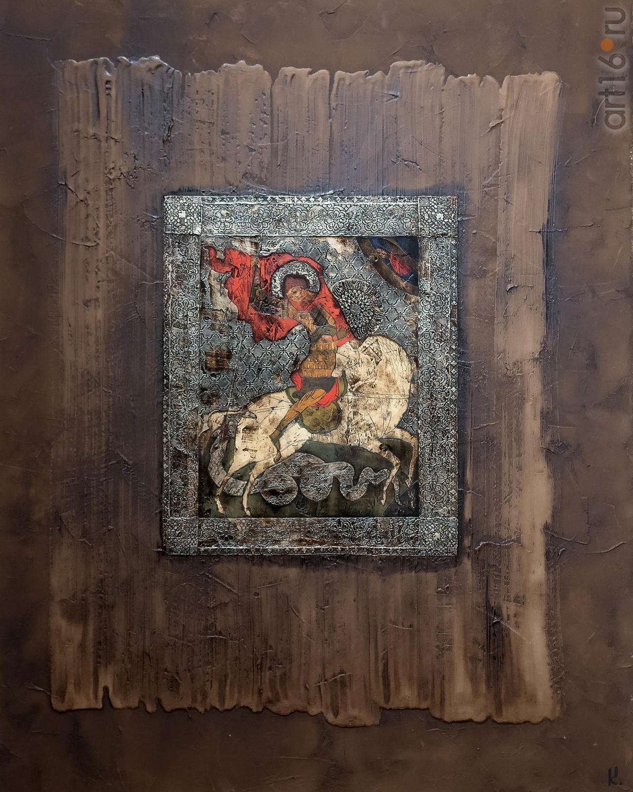 Фото №947429. Киселев Сергей (Санкт-Петербург) СВ. ГЕОРГИЙ Серия «ЧЕРНЫЕ ДОСКИ» холст, смешанная техника 2017