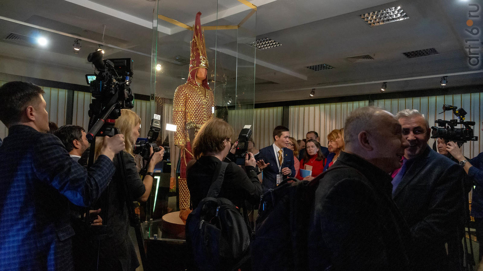 Фото №954487. Art16.ru Photo archiveЭкспозиция выставки «Великая степь: история и культура» включает 127 предметов декоративно-прикладного искусства из фондов Национального музея Республики Казахстан. Вся экспозиция построена вокруг главного экспоната - символа Республики Казахстан "Золотого человека". Реконструкция «Золотого человека» выполнена археологом Кемплем Акишевым. В конце 60-х -начале -70-х гг. прошлого века в окрестностях Алматы при исследовании кургана Иссык археологом были обнаружены останки сакского царя. На выставке можно увидеть археологические находки V – IV вв. до н.э., сопровождавшие это захоронение.