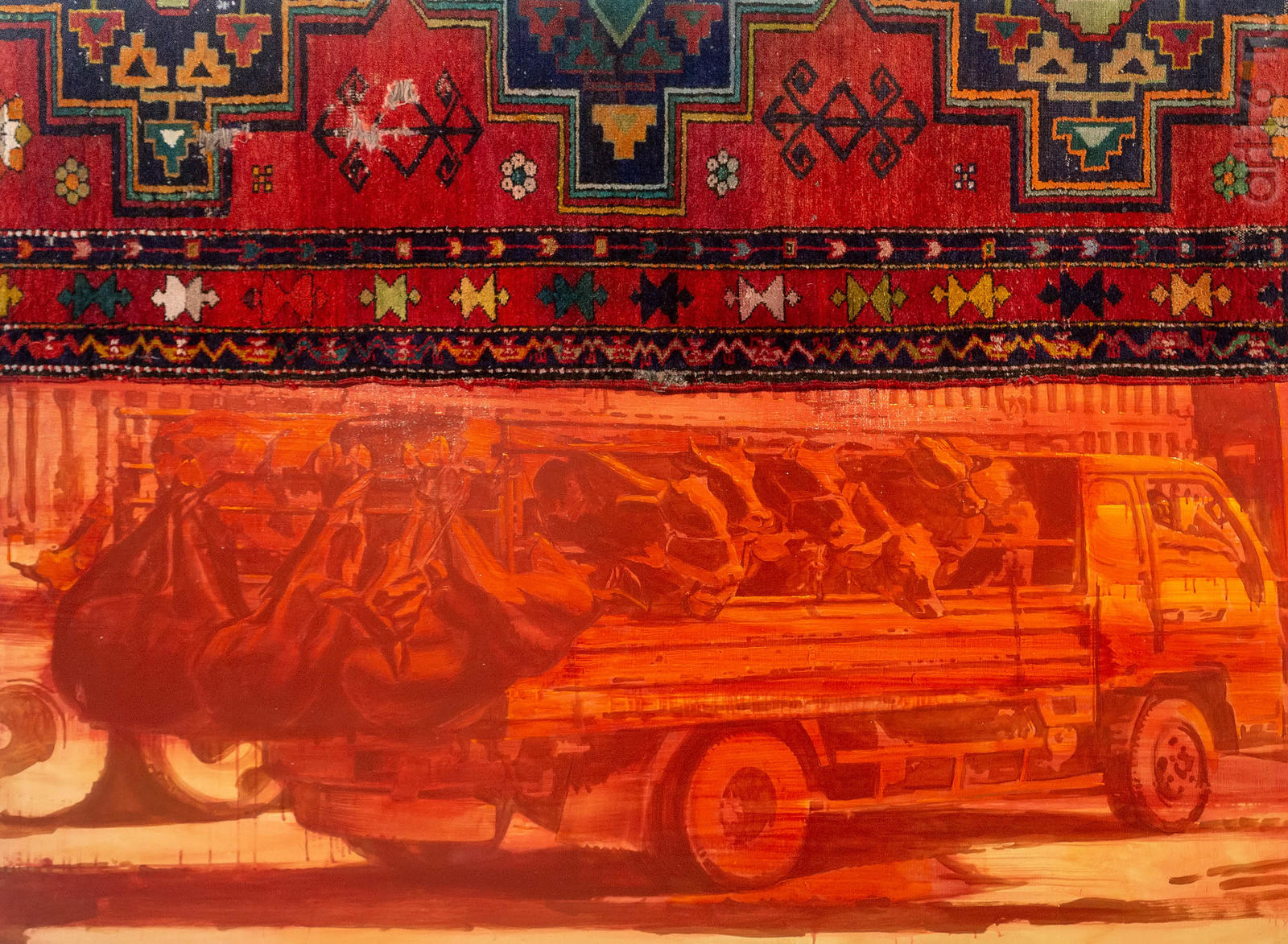 Фото №958585. На убой. 2018. Аладдин Гаруновиз серии «Среда обитания»; холст, акрил, фрагмент ковра; собственность автора