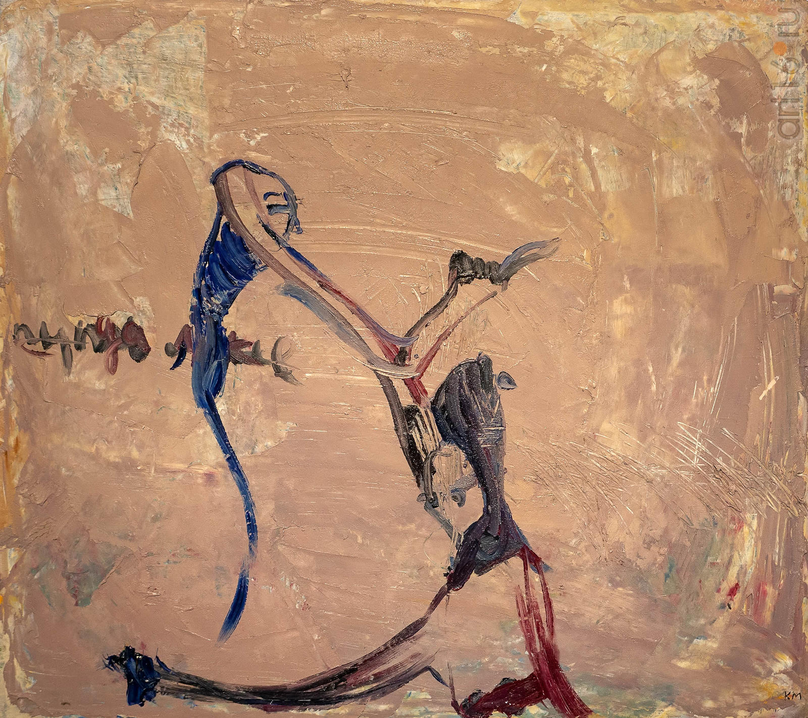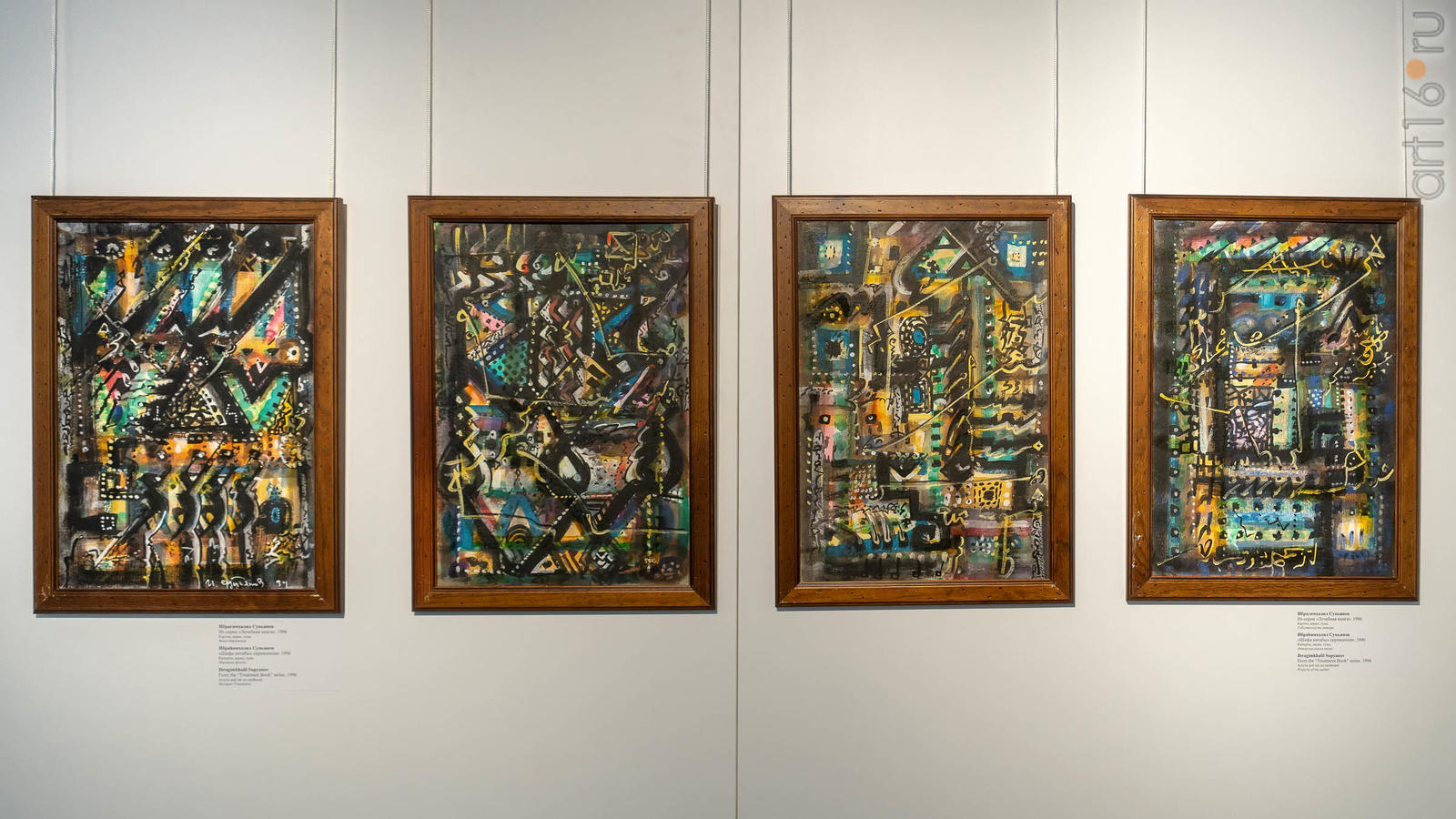 Затем снова поиск. Поверхность заливал акрилом, а сверху работал чернилами. То была знаковая живопись. В композициях того периода много вольностей. Для написания знаков использовал арабскую письменность. Мог бы использовать и китайские иероглифы, но арабская каллиграфия художнику ближе.