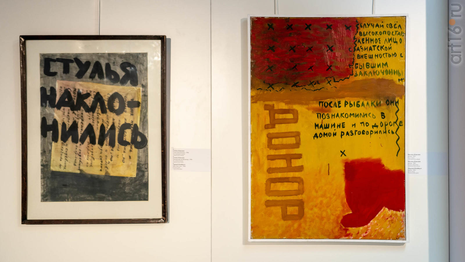 Фото №958675. Стулья наклонились. 1996 / Донор. 1991. Магомед Кажлаев тушь, смешанная техника; собственность автора /холст, масло; собственность автора