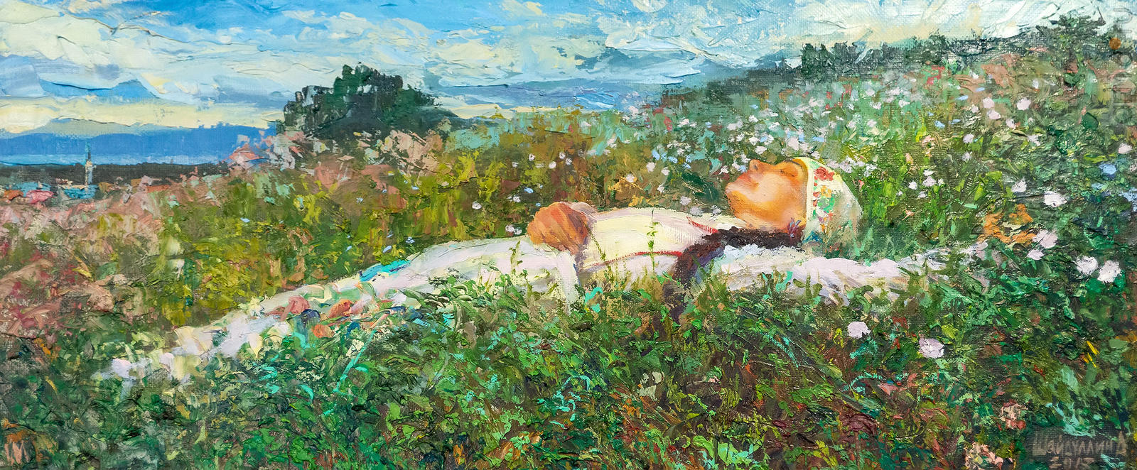 Когда смотришь на работу «Лето» Татьяны Бердниковой, в которой нежность образа натуры подчеркнута тонкостью и прозрачностью акварели, в памяти всплывают строчки А. С.Пушкина: