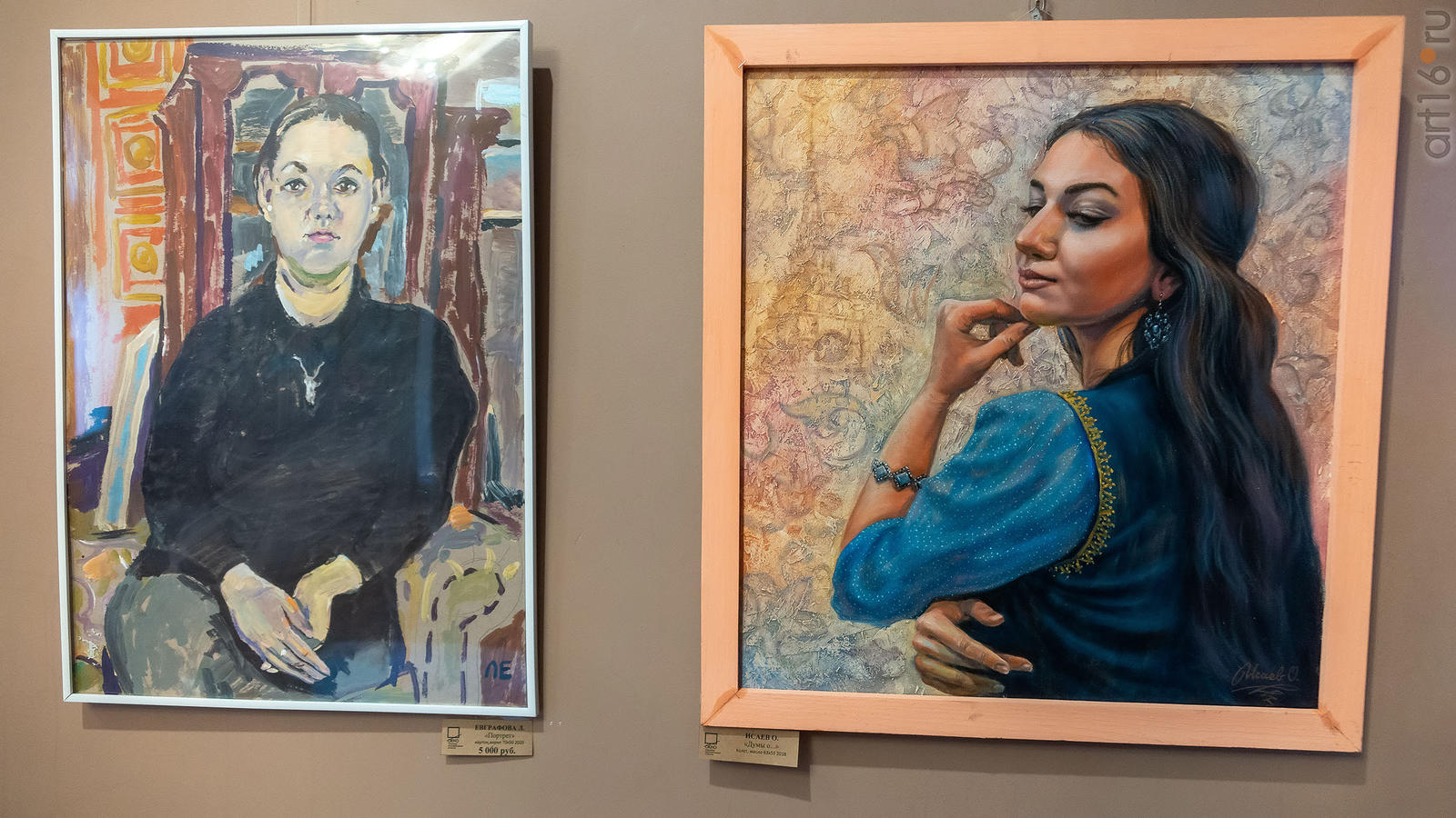 Галерея портретов, женских ликов очень разнообразна. Видимый акцент на руки труженицы в полотне Ланы Медвецкой «Лоскутный коврик». Образ женщины-матери, пережившей ужасы войны, на картине «Без названия» Альберта Тимиршина. Узнаваемы и психологичны портрет «Юли» Зуфара Гимаева, Марины Цветаевой «Красной кистью рябина зажглась», выполненный Л. Сидоровой.