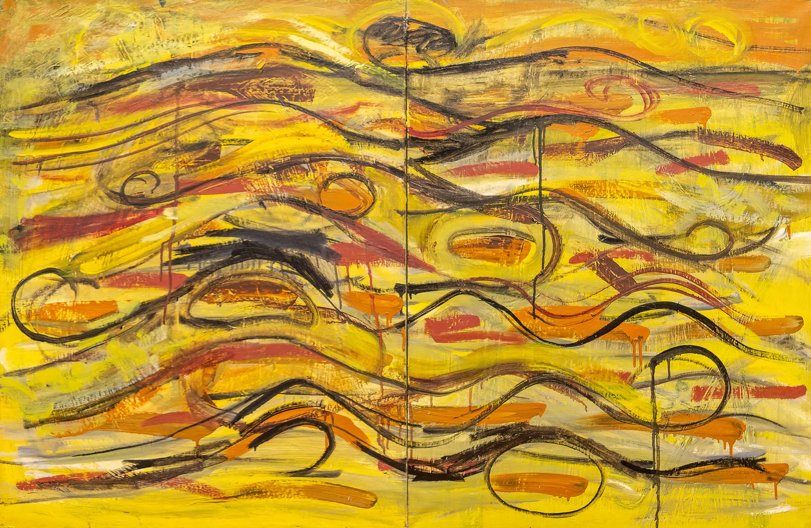 «Звездная река» — полиптих Марата Вафина состоит из 20 работ. На выставке экспонированы 4 его работы, выполненные в пастозной технике.