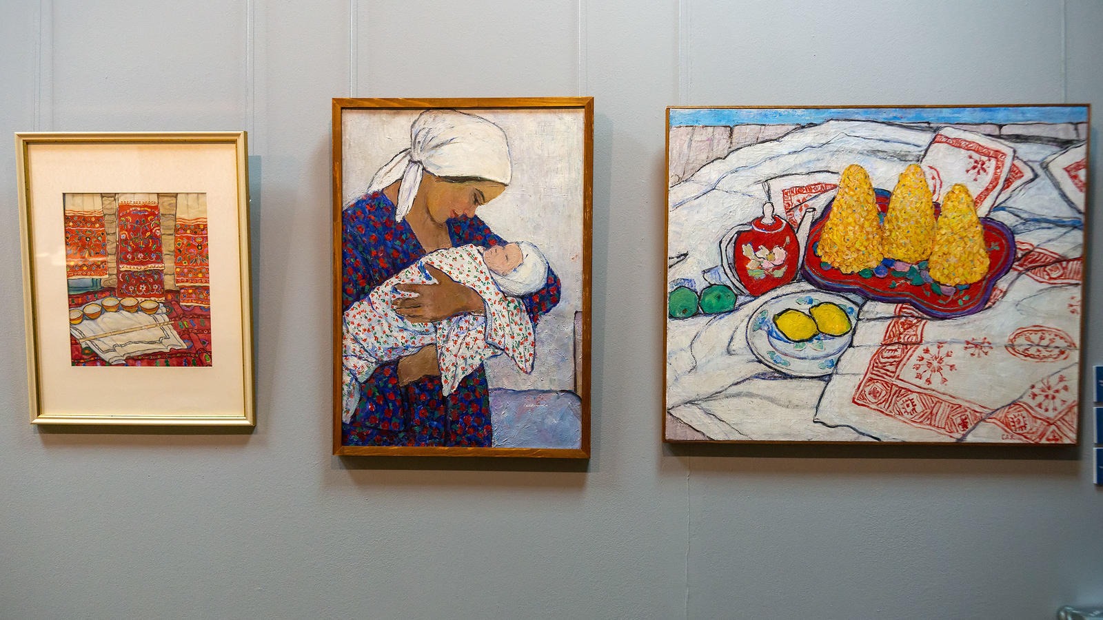 Фото №980795. Натюрморт с вышитыми полотенцами. 1981 /Материнство. 1968 /Натюрморт с чак-чаком. кон. 1970-х. Адия Ситдикова