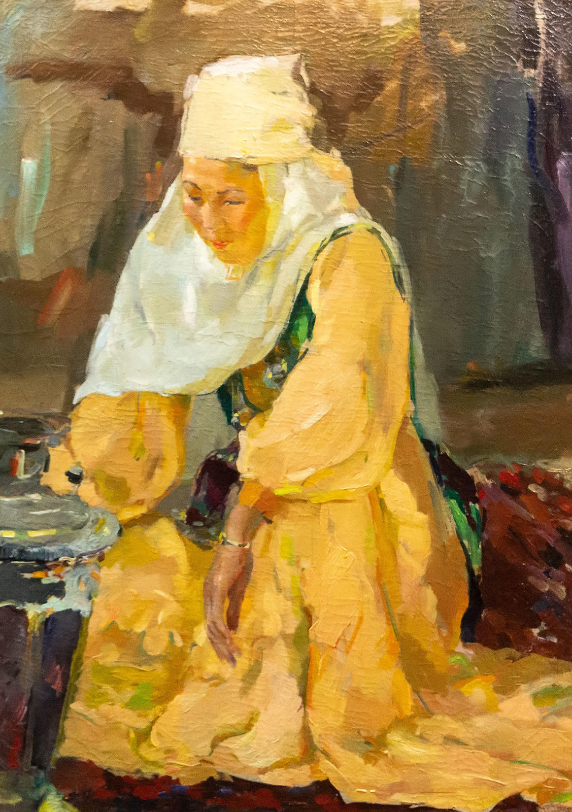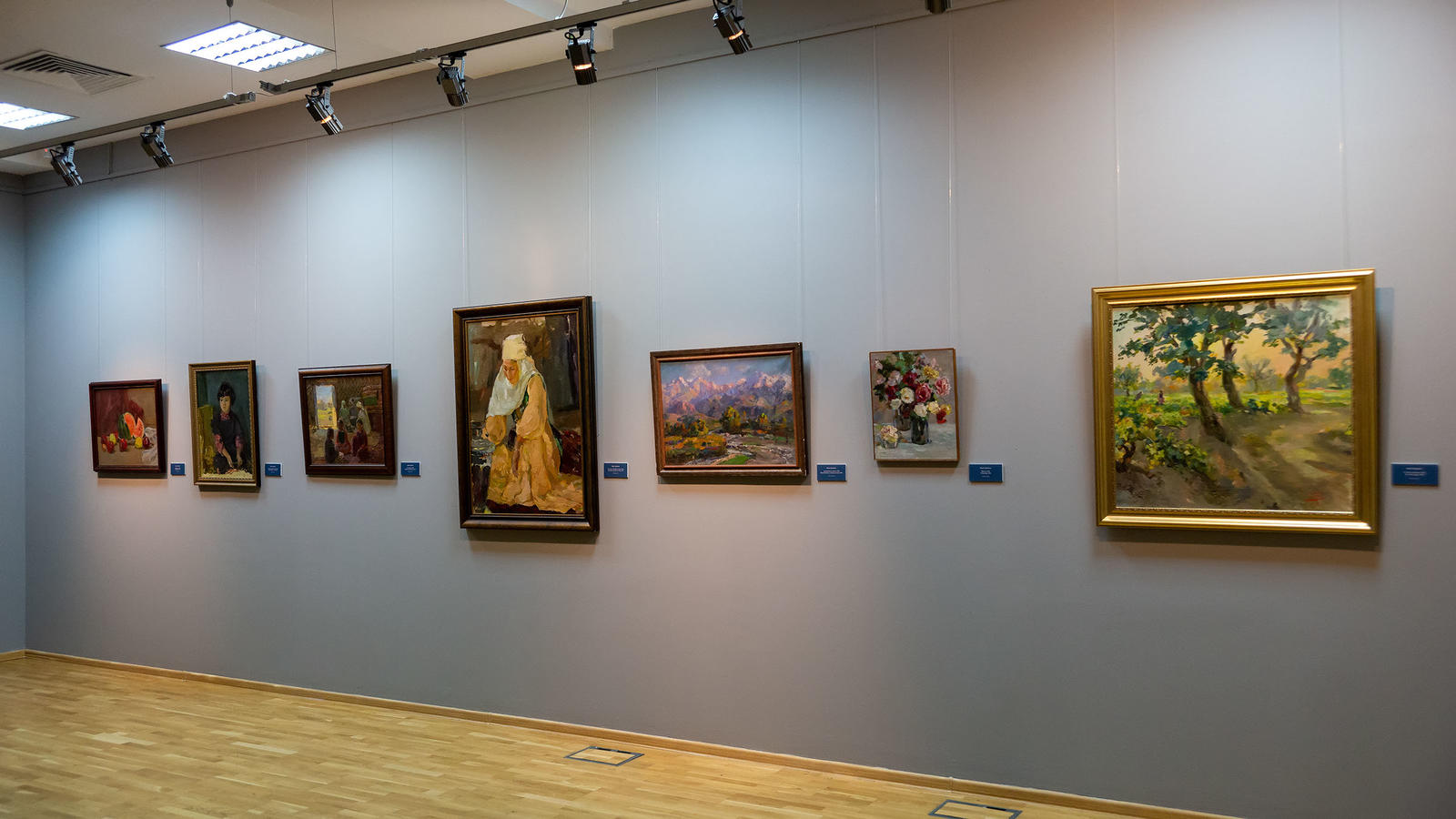 Фото №980875. Фрагмент экспозици выставки «Родник любви и вдохновения»Мы видим картины «Дети в юрте», «В гостях у Абая». Собственно, он был приглашен а в Алма-Ату, создавать работы на тему Абая, проектировать памятник. Если сравнивать работы Баки Идрисовича по колориту, то заметно, что картины на казахские мотивы более темные, а Узбекистан в его творчестве солнечный и светлый.