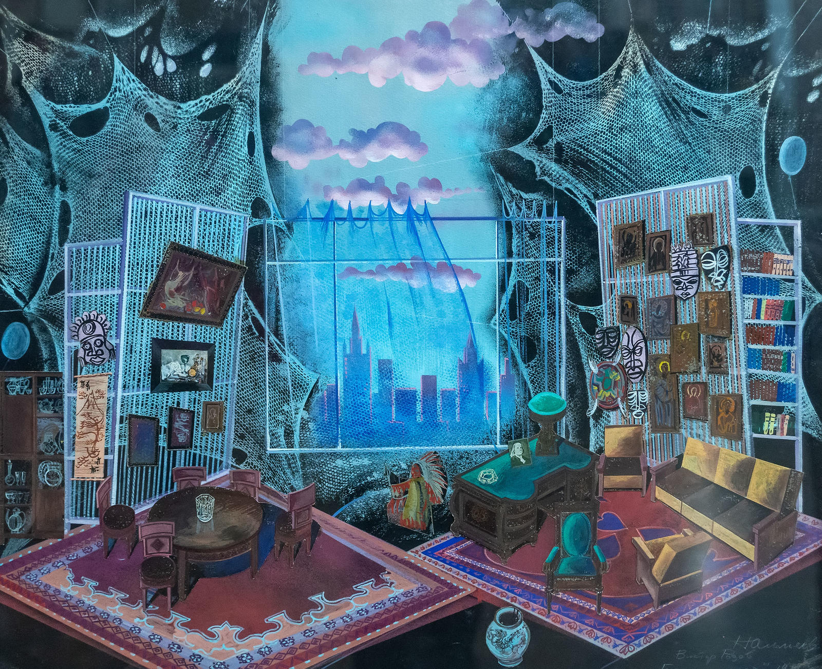 Фото №981274. Эскиз декорации к пьесе Розова "Гнездо глухаря". Альмеев Надир Усманович (1946)бумага, гуашь