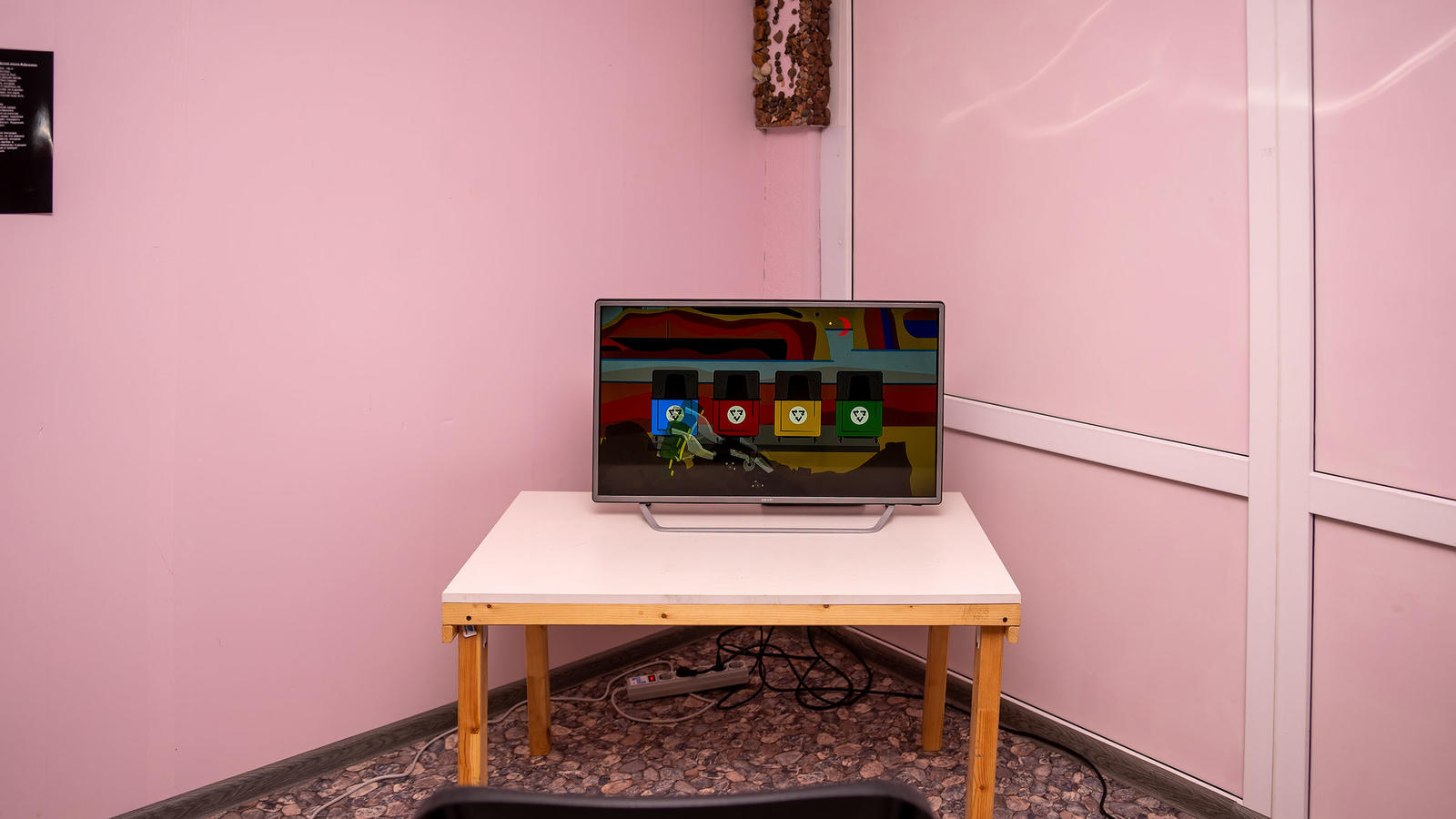 Фото №982961. На экране стоп-кадр из мультфильма В.Муртазина о выборе контейнера под мусор