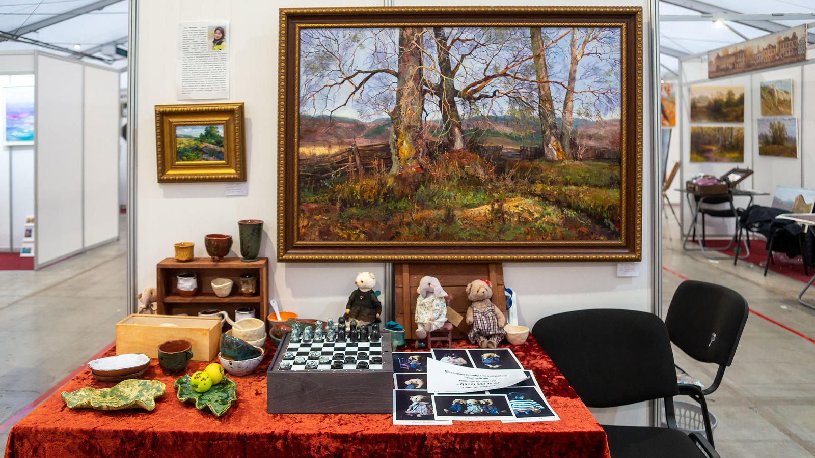 Стоит отметить, что местные художники представлены богато. Они с готовностью общались с посетителями, отвечали на их вопросы, помогали определиться с выбором. Атмосфера гостеприимства, радушия ощущалась во всем. Долгожданная выставка мастеров художественного творчества различной направленности пролетела вместе с уносимой ветром последней листвой. Но как и золотая осень нынешнего года оставила след.