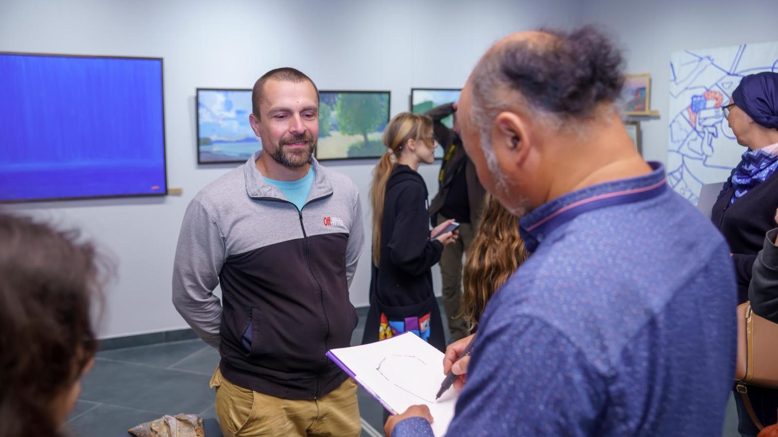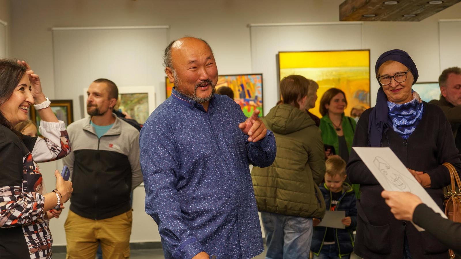 Фото №990931. Бато Дугаржапов на открытии выстакви «Мы вместе». Шарж в подарокО художниках: