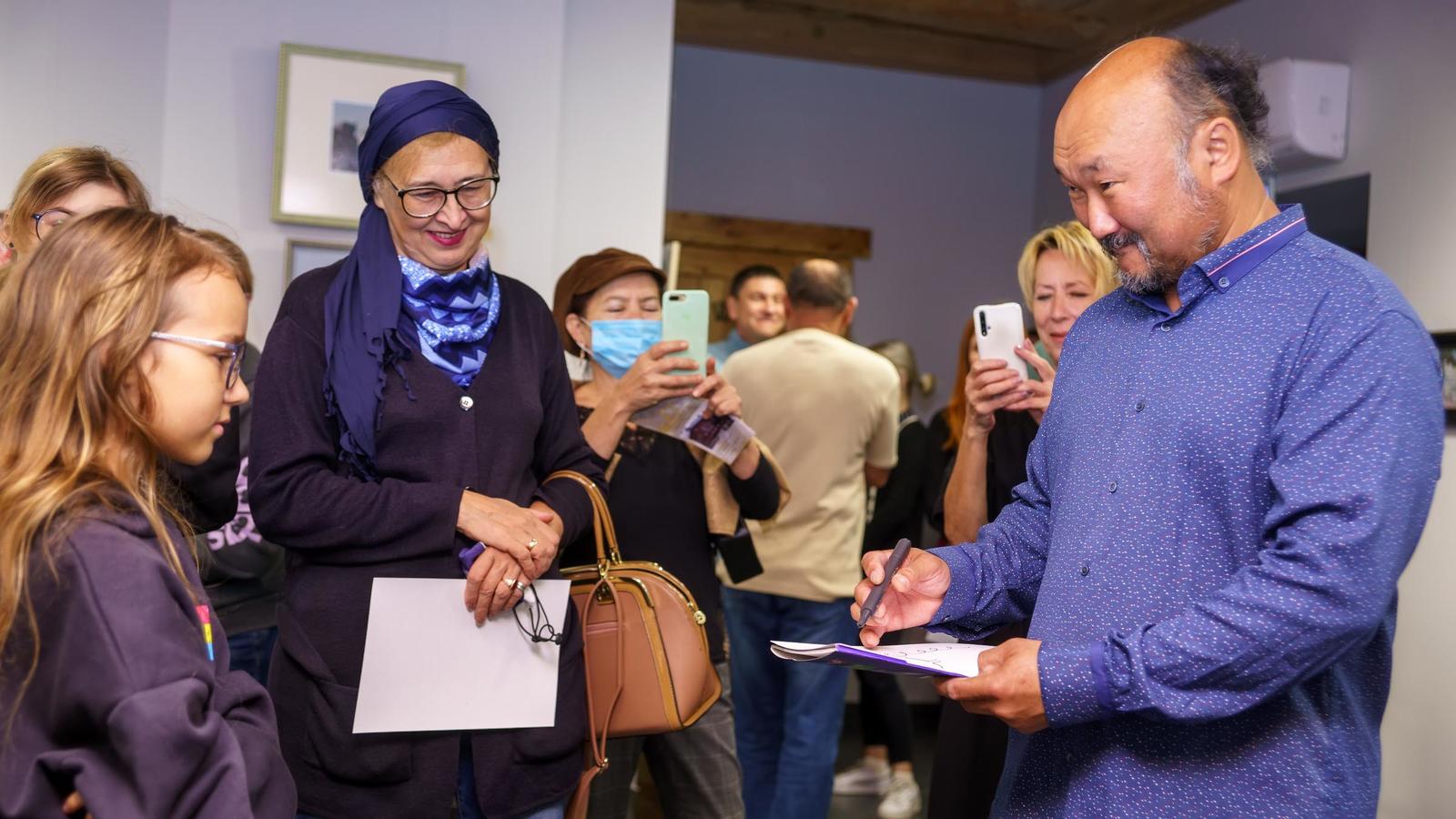 Бато Дугаржапов еще до начала церемонии открытия успел навести контакты со зрителями. Он дарил всем желающим шаржи. Публика тепло приняла художников. Атмосфера благоприятствовала общению.