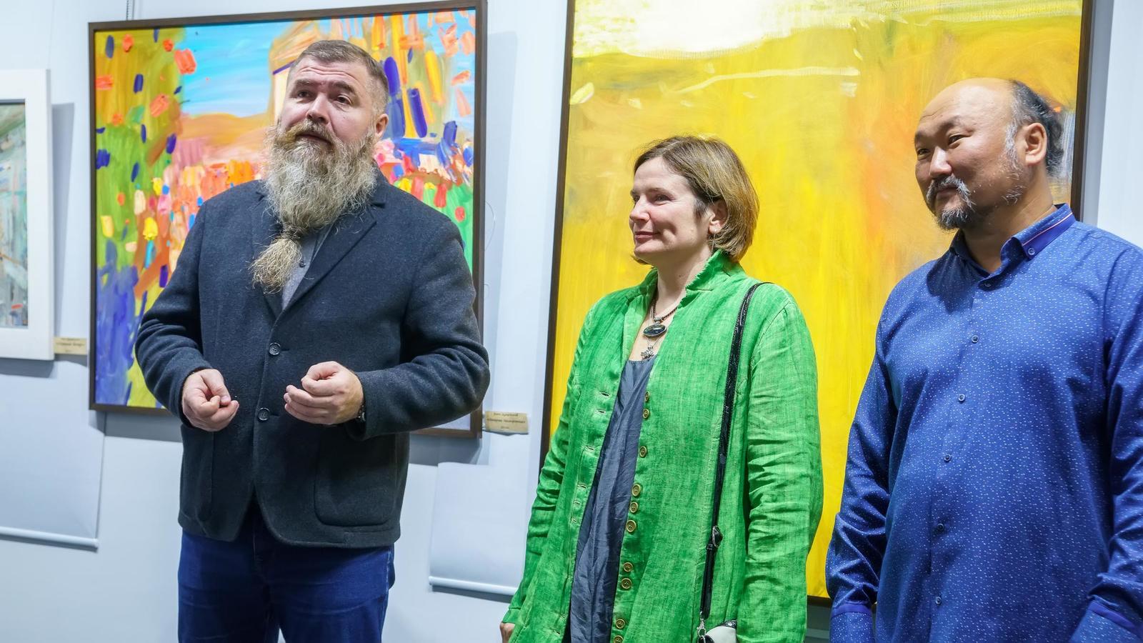 Фото №991031. Ирина Митрикова, Наталья Григорьева, Бато Дугаржапов12 сентября 2021 года в галерее «Дом Арт» открылась выставка Бато Дугаржапова и Ирины Митриковой «Без булдырабыз! Мы можем!».