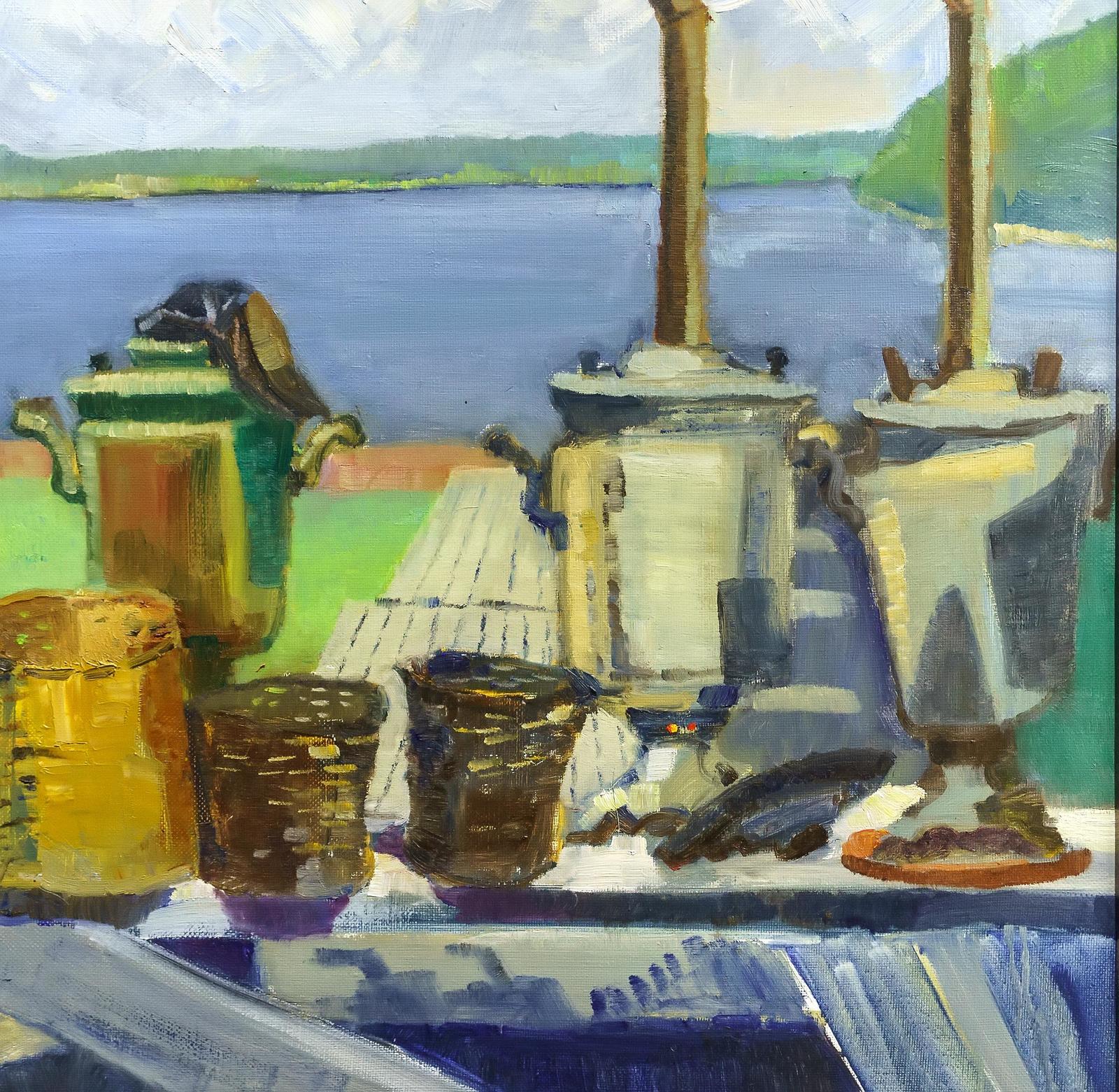 — Пленэр для художника это особенное состояние. Люди пишут в разных погодных условиях. Меняется освещение, дует ветер, жара, дождь льет, — делится Ирина и вспоминает зимний пленэр в Костроме, — Мороз - 18 градусов, а мы пишем. Краски застывают, все коченеет. Краски держишь в кармане, там они хоть сохраняют тепло. Иначе камень, не выдавишь на палитру. На самом деле, обо всем этом забываешь, пока пишешь, а потом вдруг щелчок, ты понимаешь, что продрог. Скорее собираться! Пленэр — это живое искусство. Это картины не рожденные по фотографиям в мастерской, в тепличных условиях. Он хорош тем, что у тебя есть ограниченное время, тебе не нужно дописывать бесконечно каждый листик, травинку. Отдал и все. Думаешь, что это надо дописать, но как правило, не касаешься. больше. Потому что чувствуешь, что уже не то. Надо дописывать прямо на месте.