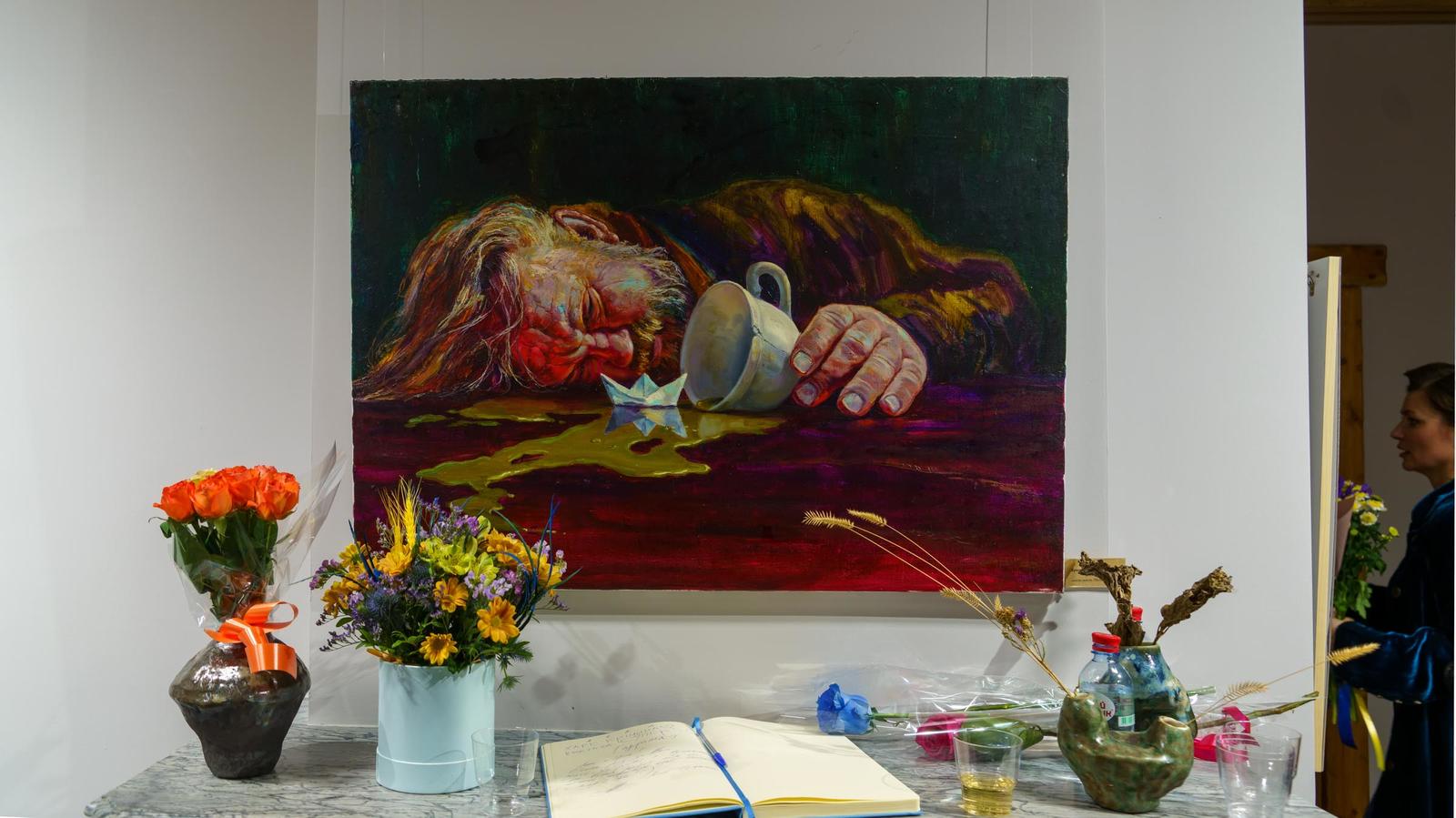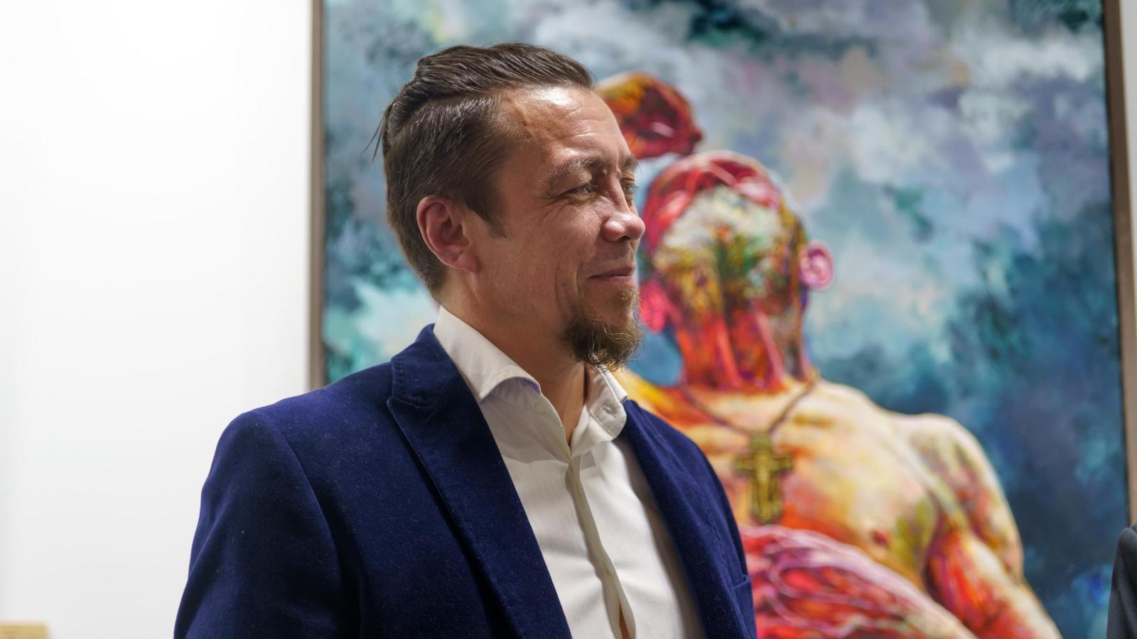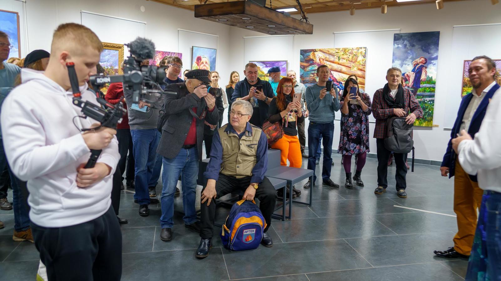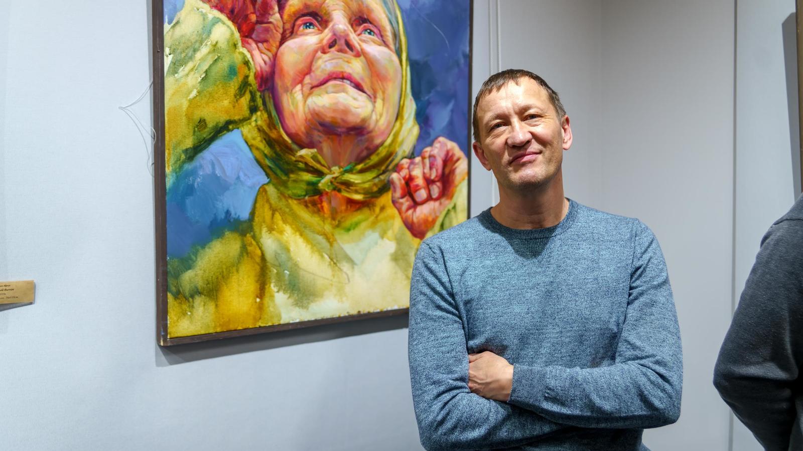 Фото №996514. Ринат АхметовИрик, очень трепетно относится к женщине. Он считает, что женщина — это жизнь. Работа, за спиной у Рината Ахметова, называется «Журавли». Картину И.Мусин посвятил матерям.