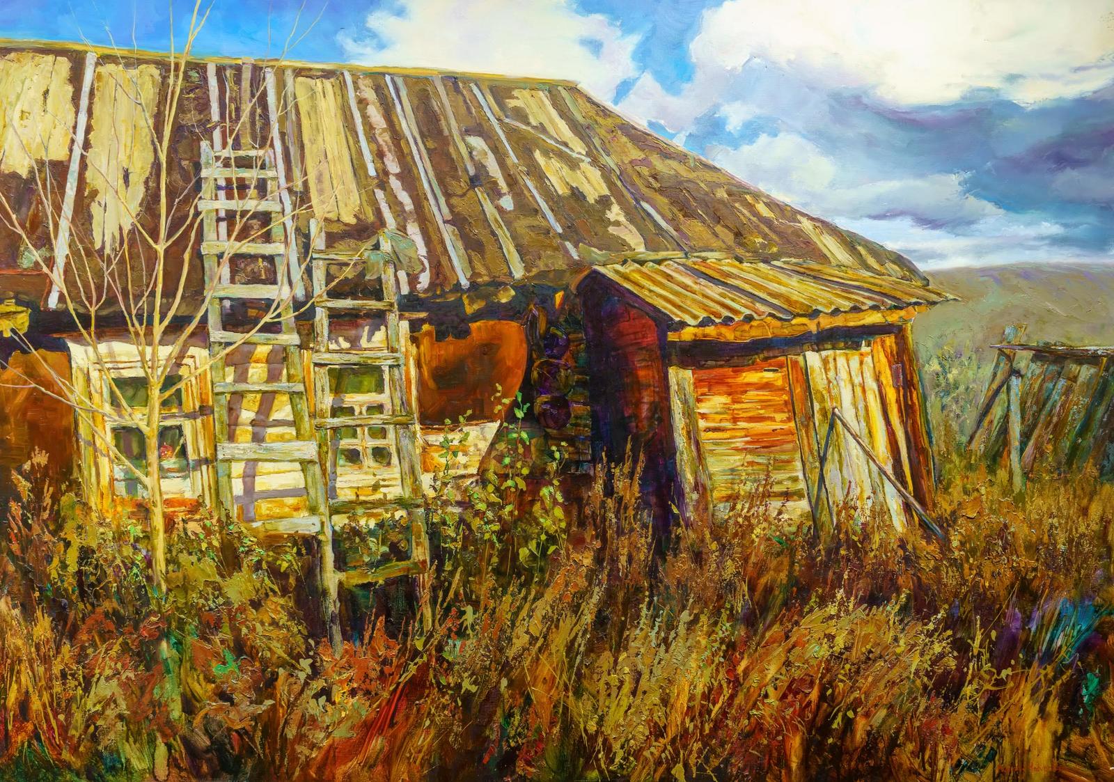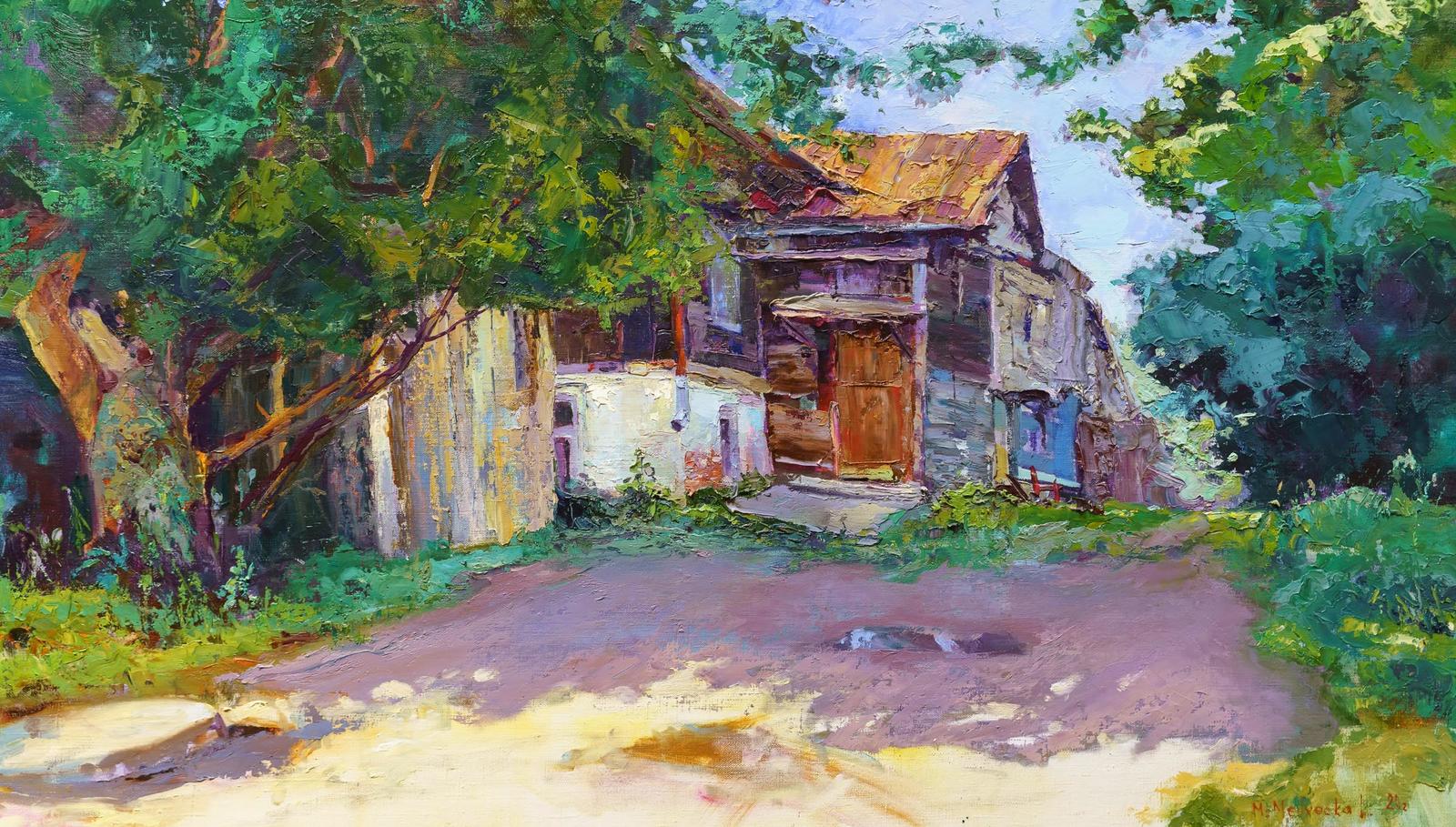 Фото №996684. Дневные тени. 2021. Лана Мусина-Медвецкая— Я пишу не о себе, а о нас. У каждого своя история. Может быть не та деревня... Но это близкое, родное, знакомое, уходящее. Ни заборов, ни покосившихся старых домов, ни многовековых деревьев скоро не останется. Но это то, что хочется сохранить хотя бы на полотнах.