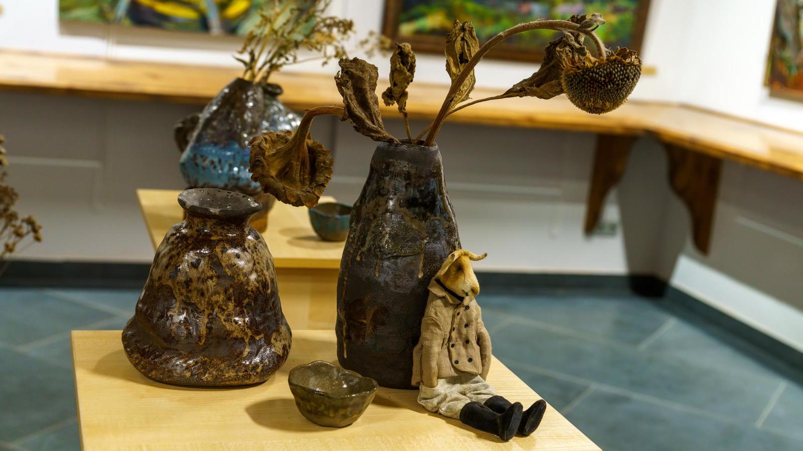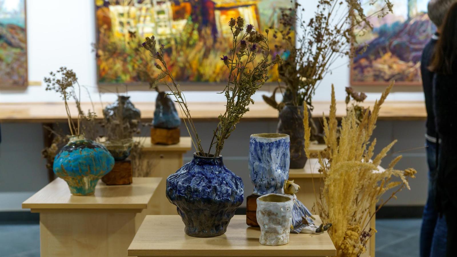 Фото №996714. Керамика. Лана Мусина-МедвецкаяЯ хочу, чтобы на керамику взглянули, не как на вазу для цветов, а чтобы сама ваза воспринималась людьми как арт-объект, который может дополнять интерьер дома. На выставку мы принесли сухоцветы, чтобы показать, что в природе нет абсолютно ровного и симметричного. Красота в несовершенстве. В вазах — природные формы природные цвета, нет яркого украшательства, потому как сами цветы — будут украшением вазы. Если в живописи для меня важен цвет, нежели форма и я меньше обращаю внимания на рисунок, больше на цвет, тональные отношения, то в керамике для меня важнее ощущение материала, тактильной формы. В керамике сдеражанность цвета и главенство формы. Живопись и керамика — это мои две разные ипостаси, где я могу быть совершенно разной.