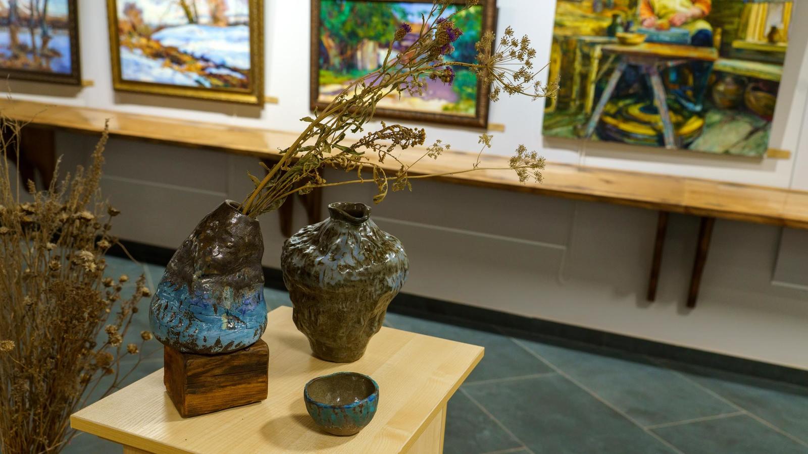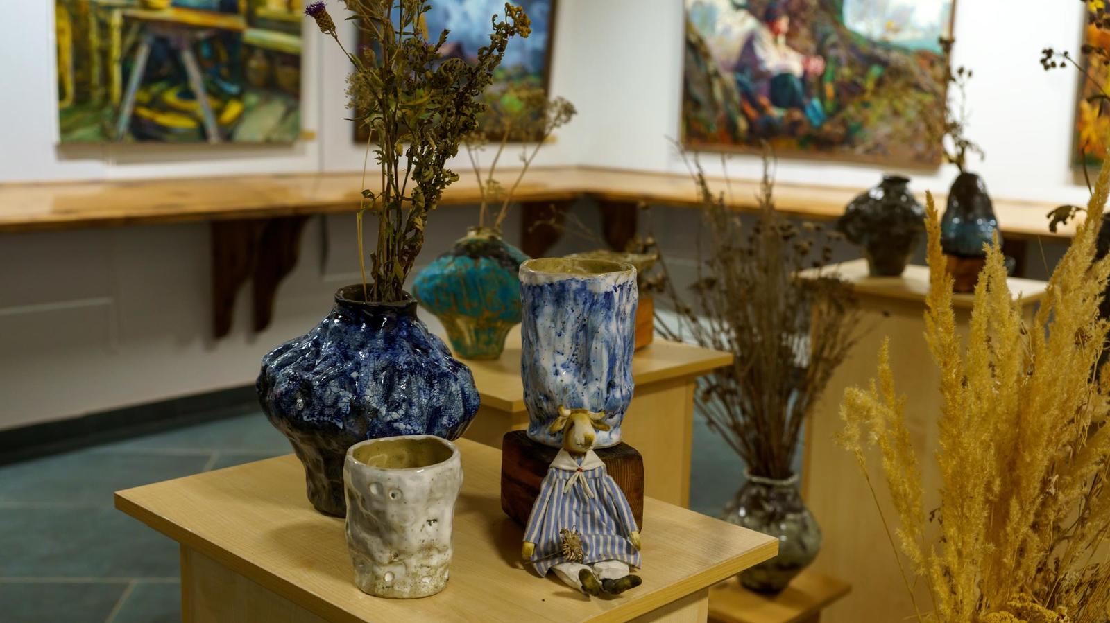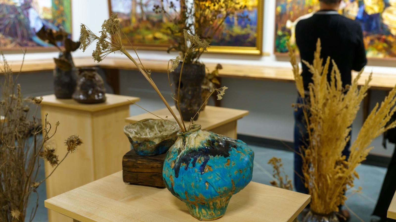 Фото №996699. На выставке «Диалоги»Когда Лана пишет пейзаж, то это всегда «портрет природы». Любой красивый вид, она пропускает через себя, через сердце, старается написать картину так, чтобы «зритель, который пришел, увидел не красивый пейзаж, не красивые дали, а услышал то, что я прочувствовал в этот момент. Увидел, что-то свое, созвучное». Это требует колоссальных затрат, каких-то душевных сил. Энергию Лана Мусина-Медвецкая восполняет, создавая керамические изделия.