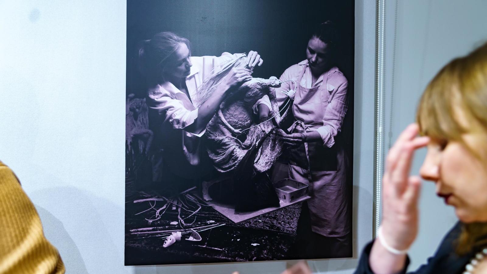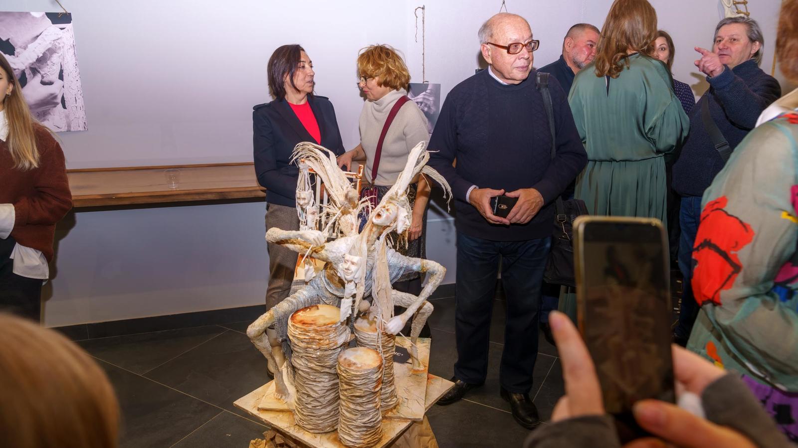 Существенным дополнением к оформлению выставки послужили черно-белые фотографии. На них — процесс творения. Это еще один из элементов, усиливающих воздействие искусства на зрителя.