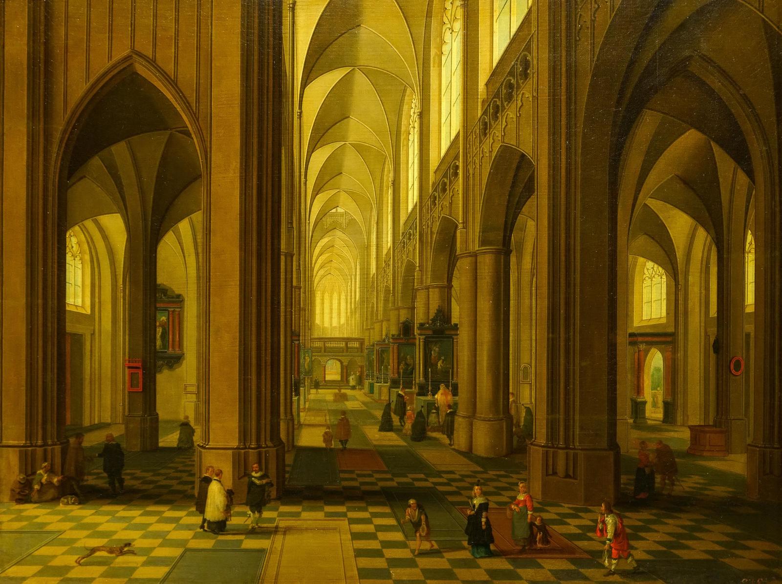 Фото №999573. Интерьер антверпенского собора. Петер Неффс Младший, Давид Тенирс Младшийсер. 1640-х гг. холст, масло, 49*64.5
