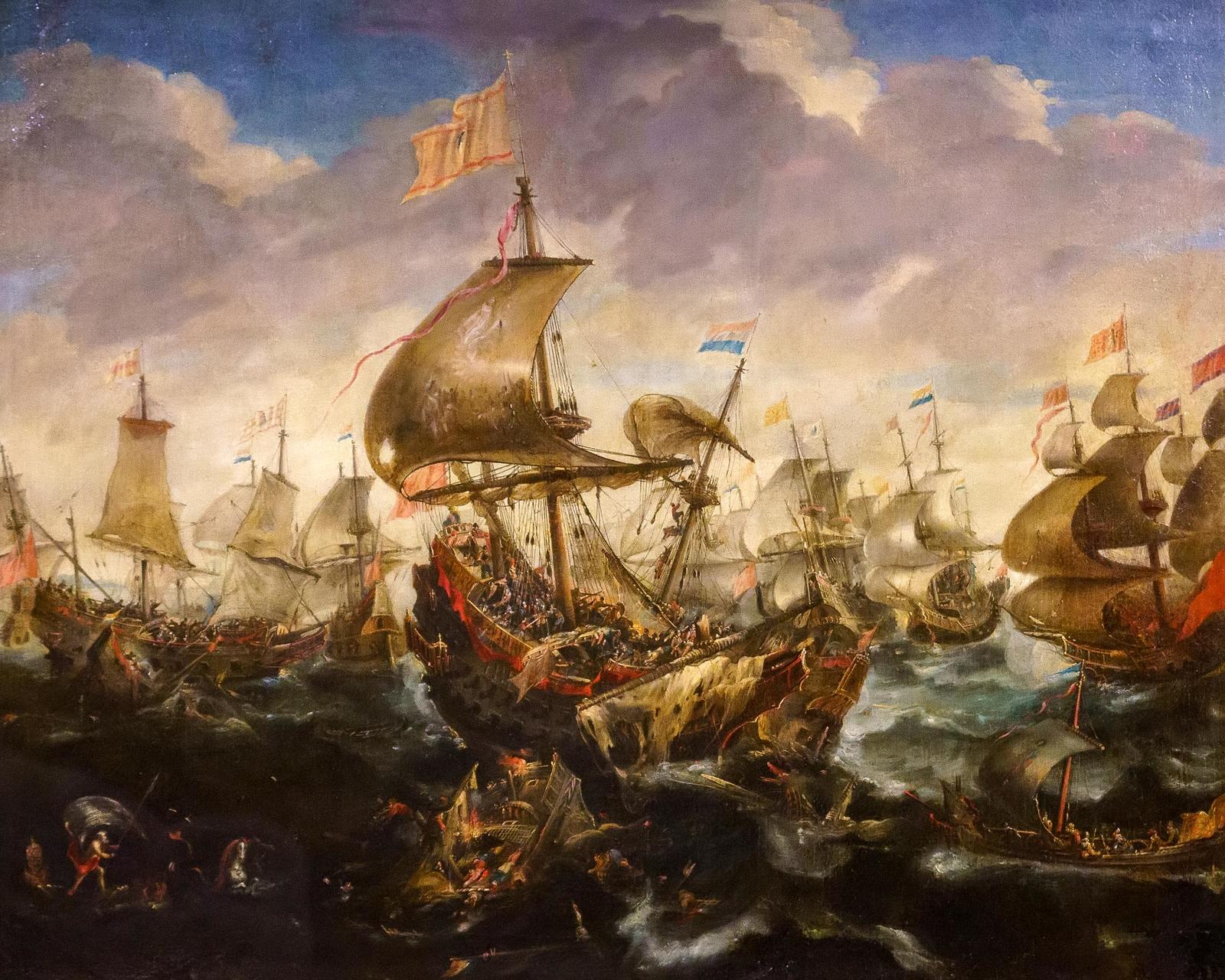 Фото №999643. Сражение испанского флота с кораблями восставшей Голландии в мае 1573 года во время осады ХарлемаАндрис Ван Эртфельт, сер. 1620-х гг., холст, масло, 134*165, 5