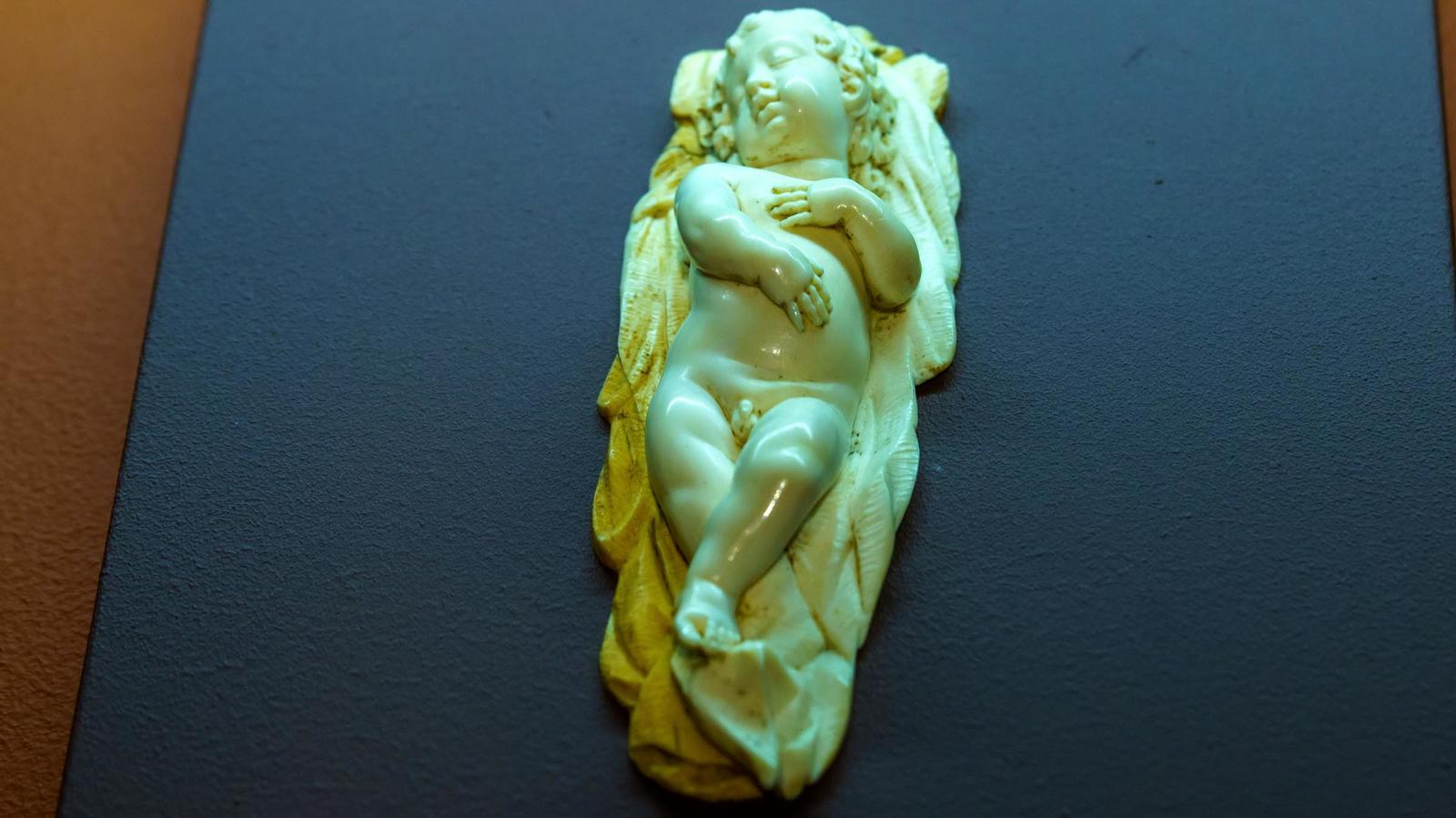 Фото №999678. Фигурка спящего путто. Фландрия. Мастер: Артус Квеллинус Старший, Сер. XVII в.Слоновая кость; резьба, длина 12 см. Поступление :1886 из Голицинского музея, Москва. Инв.№ Э-7282
