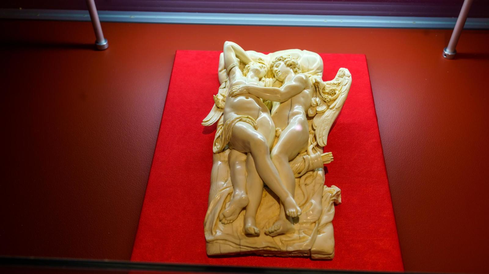 Фото №999753. Группа «Амур и Психея». Фландрия. Мастер Лукас Файдхербе, до 1640 г.Слоновая кость; резьба, длина 33 см. Поступление: 1927, из ГМФ. Инв. Э-12311