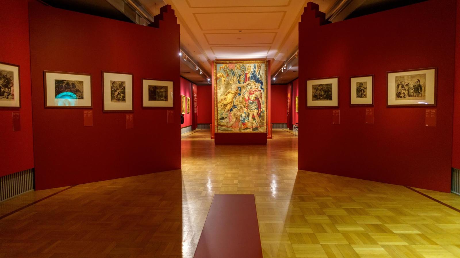 Дизайнерский подход оформления залов дает возможность представлять живописные полотна и произведения печатной графики в совокупности с произведениями декоративно-прикладного искусства. В двух последних залах представлены две монументальные шпалеры по картонам Рубенса из знаменитой серии «История Константина» – «Трофеи Константина» и «Основание Константинополя», выполненные по заказу французского короля Людовика для французской мануфактуры Команса и Планша.