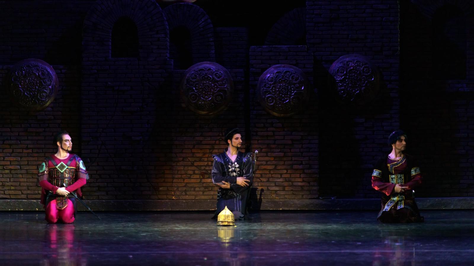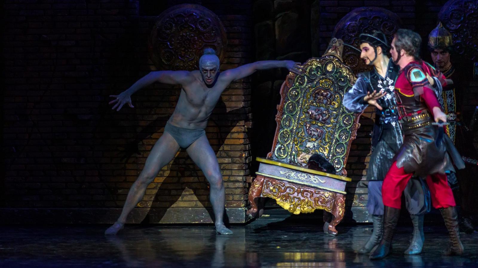 В спектакле принимают участие артисты балета, хора, оркестра, мимического ансамбля театра.