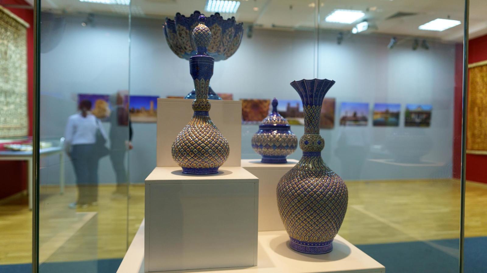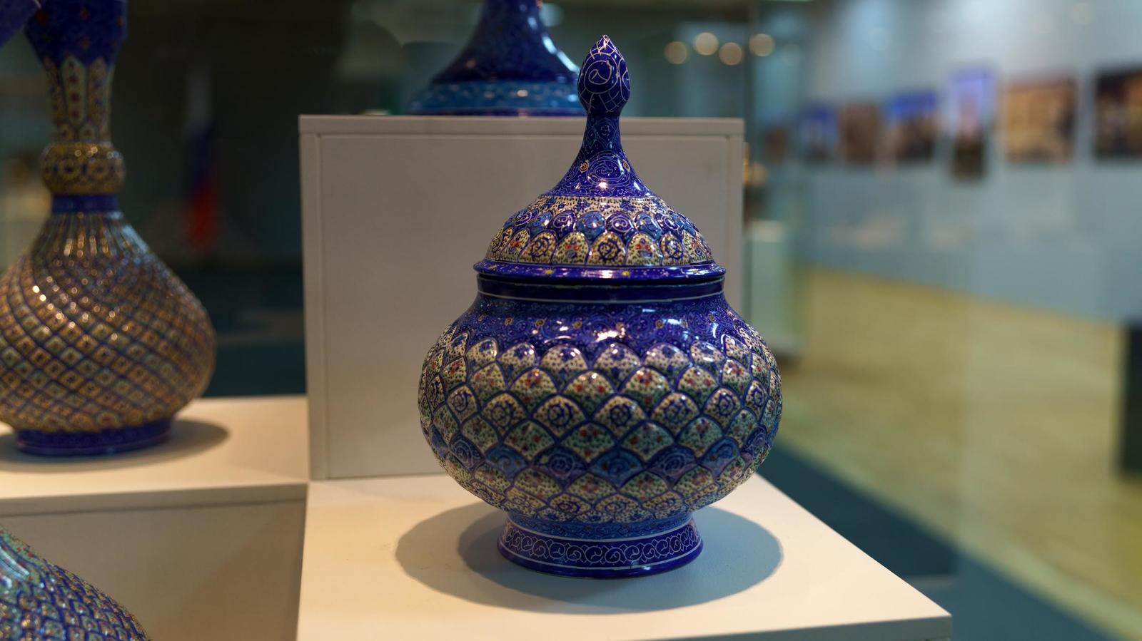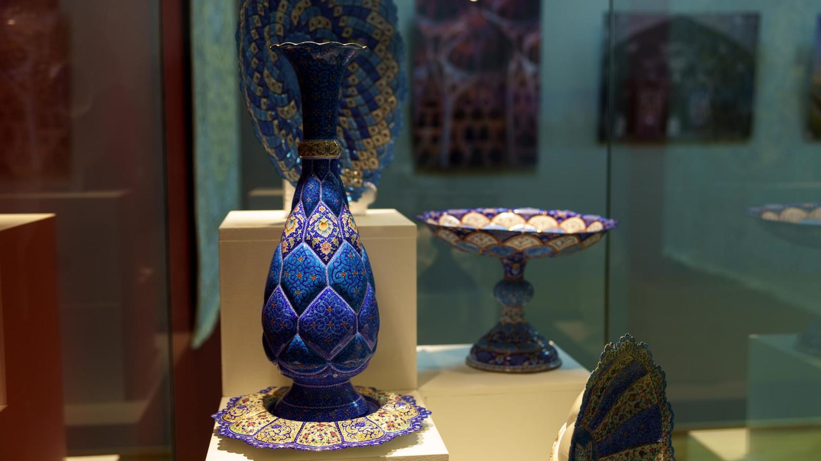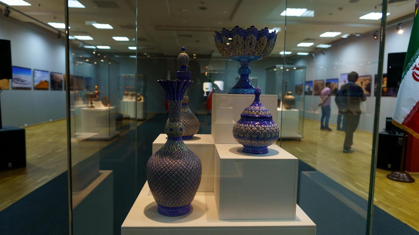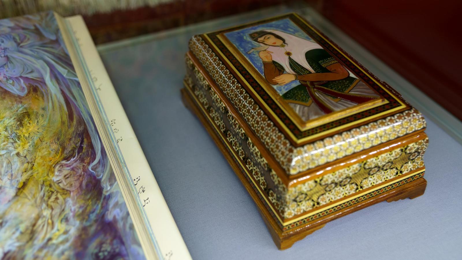 Многовековые традиции Ирана представлены в декоративно-прикладных работах. Шкатулки, разнообразная посуда (кувшины, вазы, тарелки, сахарницы, фруктовница, чашки, самовар) — выполнены в разных жанрах и техниках: минакари, фирузе-куби, хатамкари, каламкари, торевтики и чеканки.