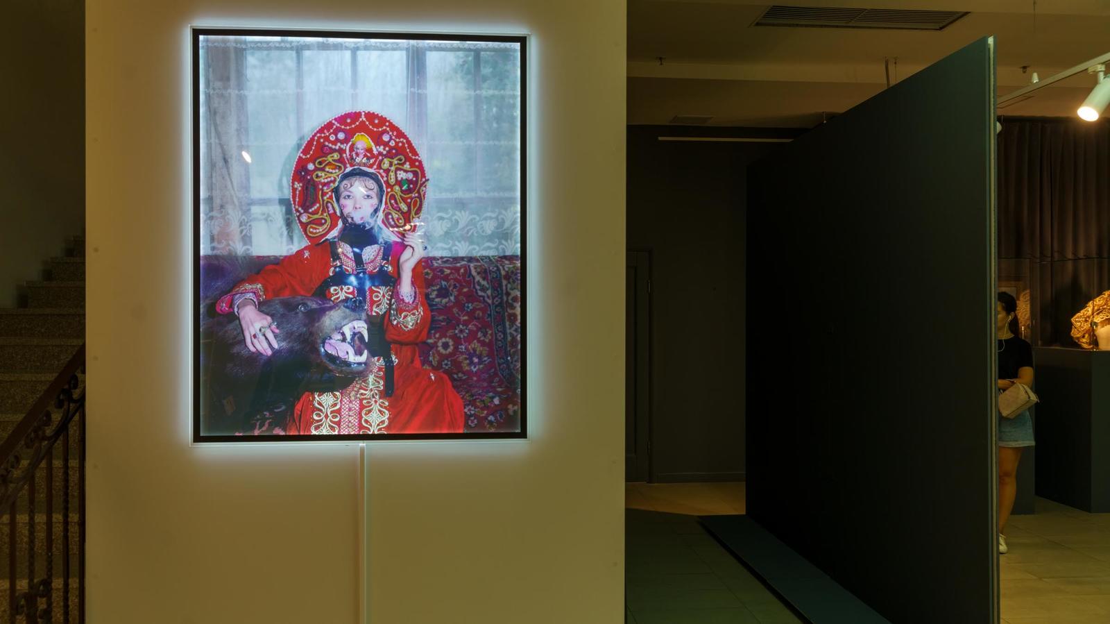 На выставке представлено 16 экспонатов, казалось бы немного, но для того, чтобы зритель смог ознакомиться с экспозицией, проделана грандиозная работа. Автор идет от замысла к воплощению в стиле «татарское барокко», получая пленочную фотографию или видео картинку. И все это происходит через придумывание костюмов, микширование аксессуаров, создание и воплощение автором (собственными руками) образов. Согласитесь долгий путь, наполненный интуицией и чувственным содержанием. Философское осмысление традиций славянского фольклора автор не навязывает, а лишь дает ключ к пониманию.