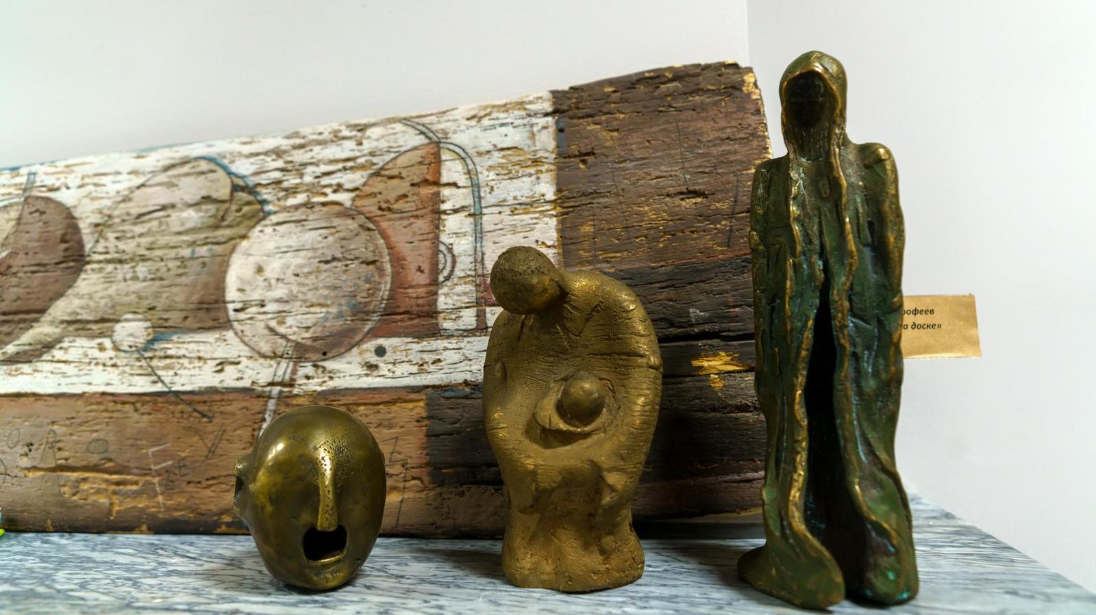 Фото №1002521. №64 Н-т на доске, 2004 и скульптурные миниатюры. Александр ДорофеевС первых минут осмотра явственно чувствуешь, что перед тобой художник с инженерно-строительным образованием. Главенствующей в творчестве идет линия, создающая форму и потом лишь в композицию приходят свет и тень, грамотно подчеркнутые цветом.