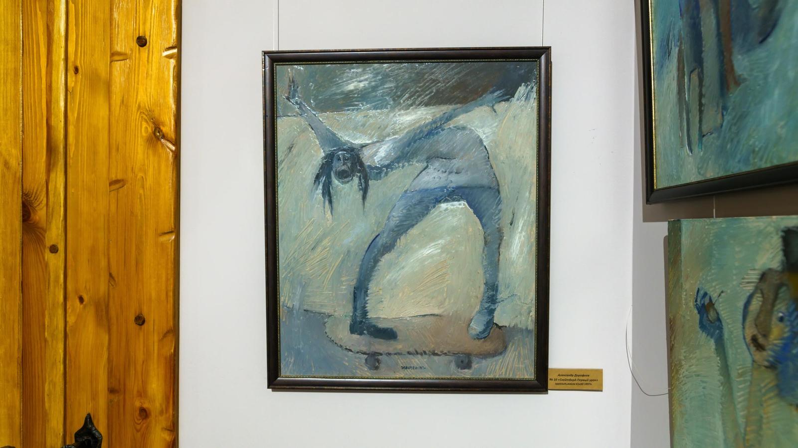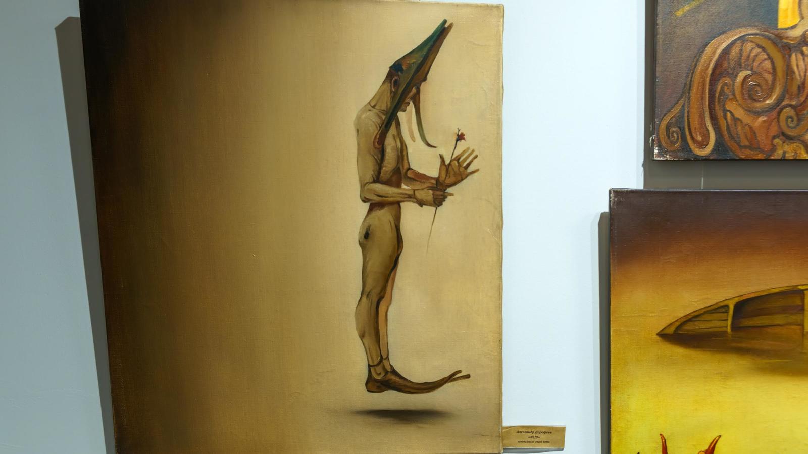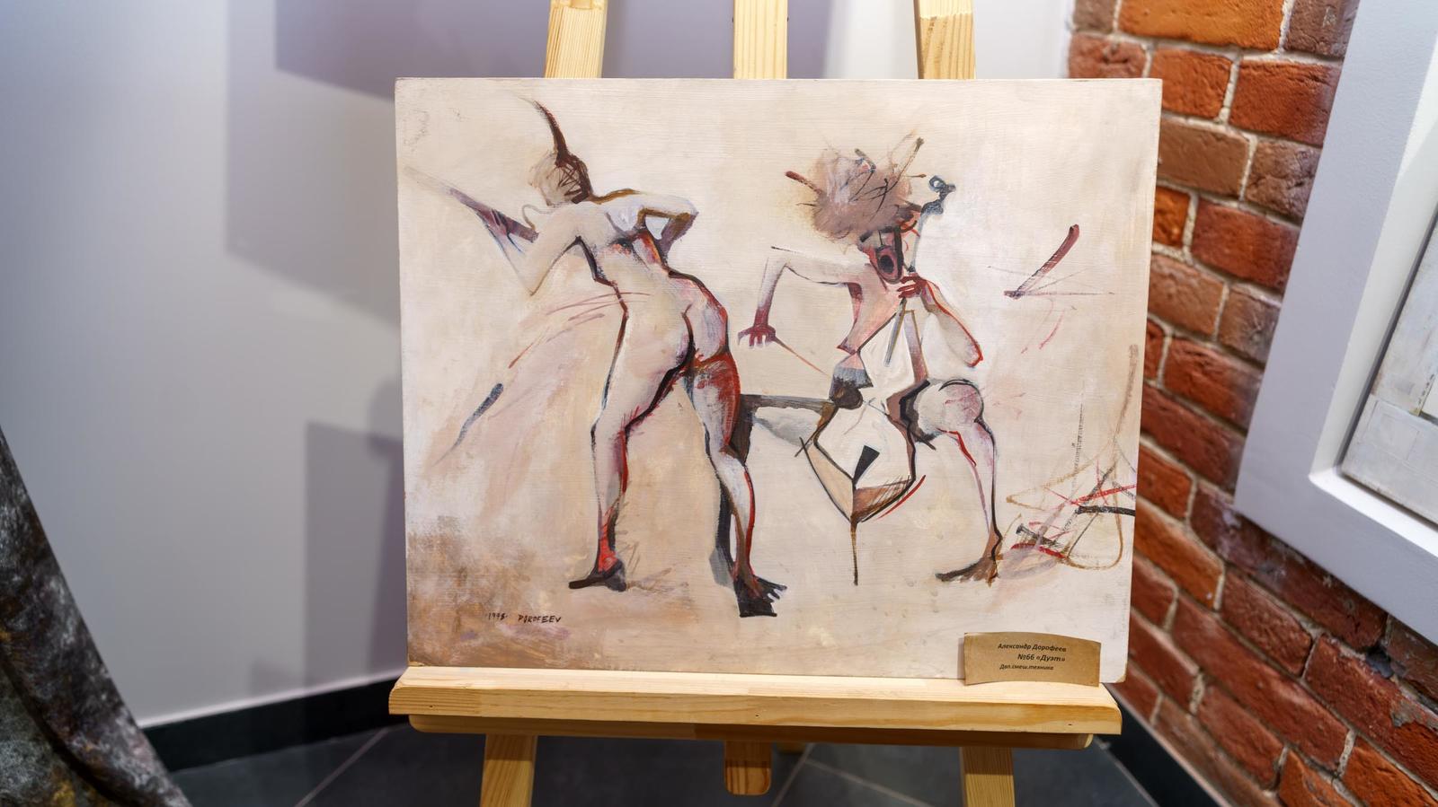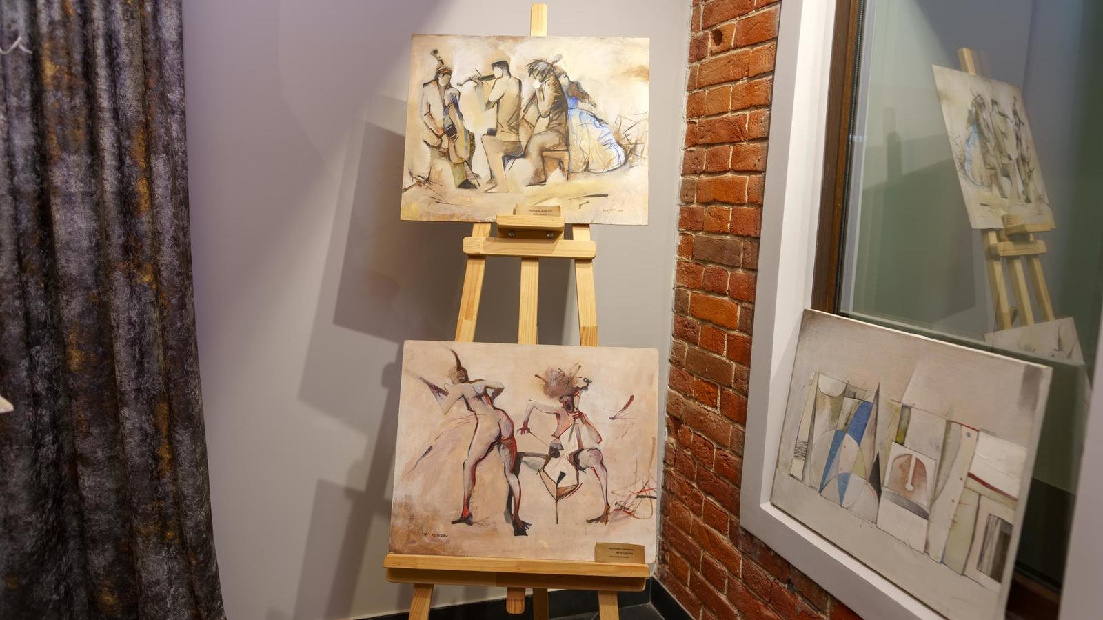 Экспозиция выставки состоит из работ, размещенных на первом этаже, и лестнице, ведущей на второй. Первая камерная выставка случилась через год после смерти художника. Устроители грамотно подобрали картины и скульптуры малых форм, чтобы отобразить богатое наследие неординарного художника.