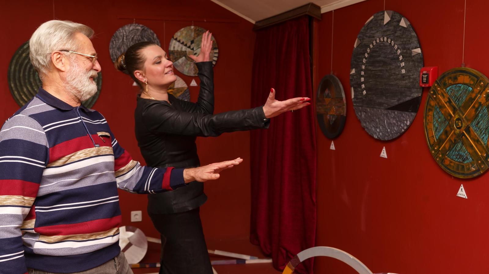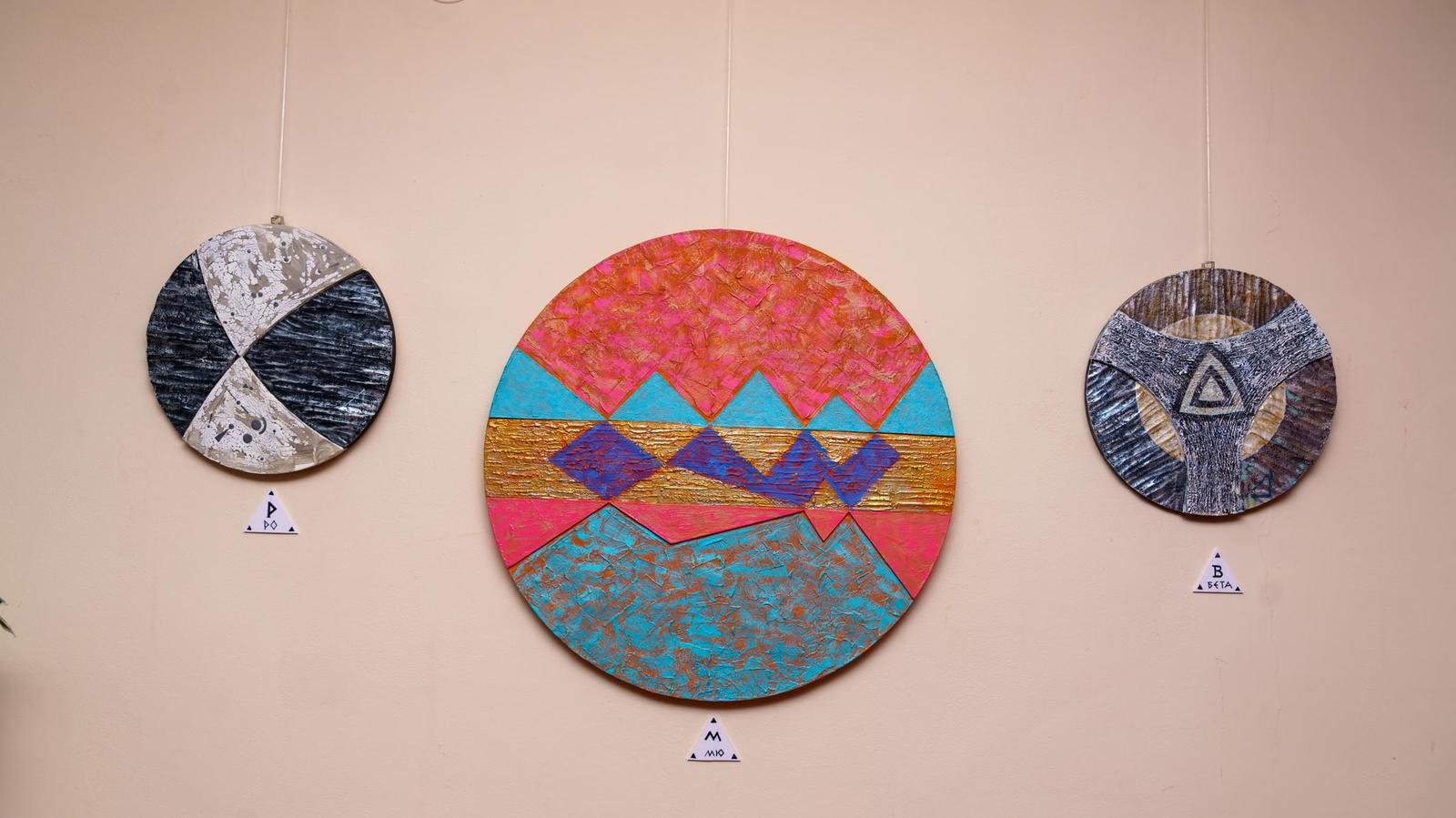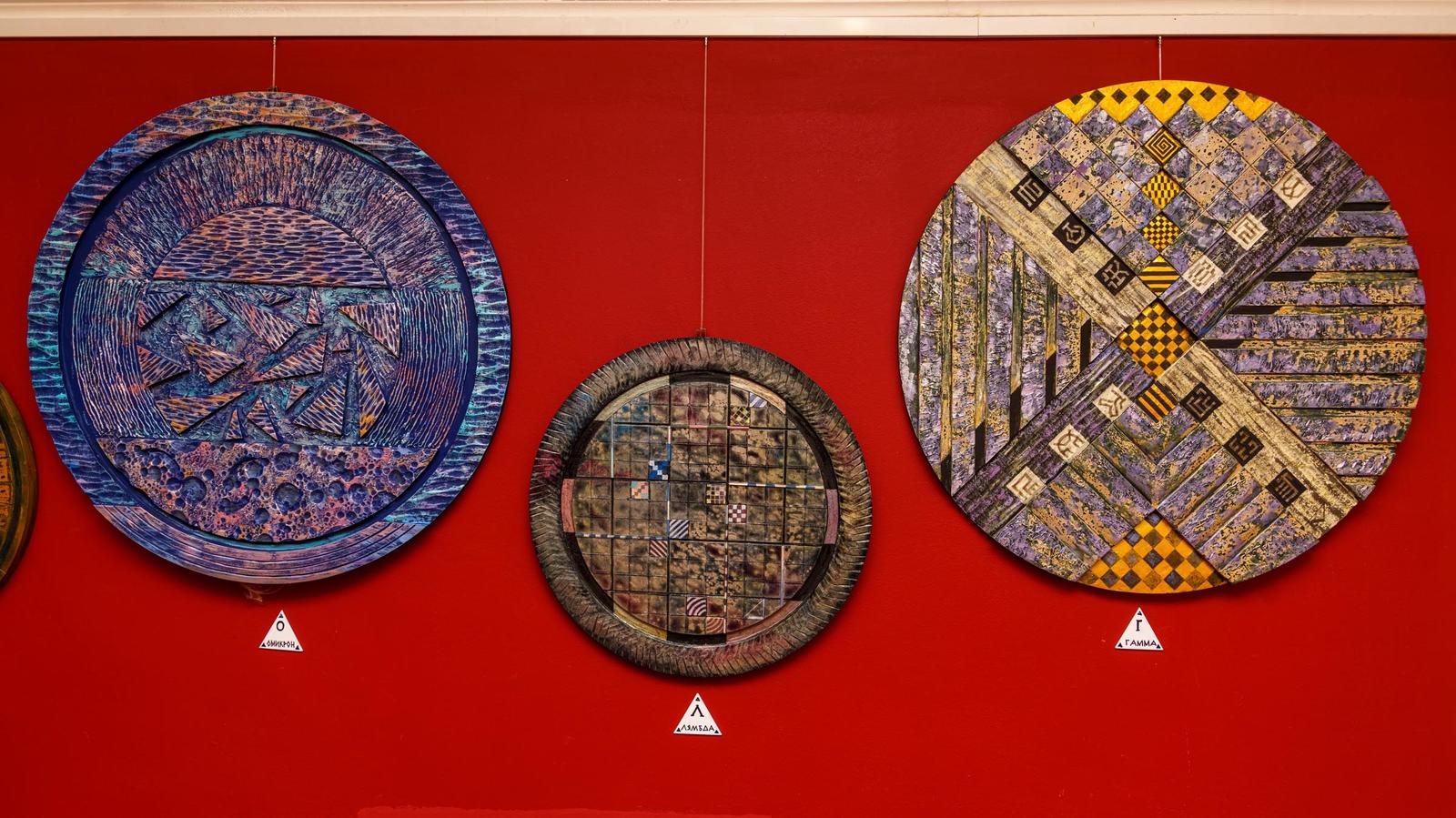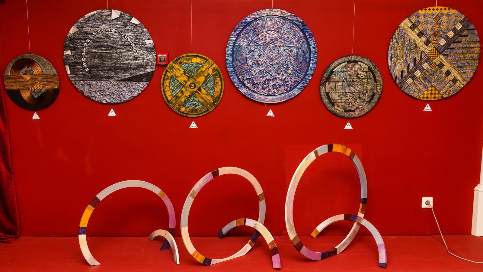Началось все с того, что сын Александра Нарциссовича привез отцу круглые МДФ панели, оставшиеся невостребованными на его производстве. В голове художника что-то щелкнуло, он захотел попытаться сделать проект — вписать композицию в круг так, чтобы не было традиционно. Задача предстояла не из легких, закомпоновать в круге какие-то свои дизайнерские "заморочки". Кропотливо в течение полугода, отвлекаясь на насущные дела и другие творческие работы, Александр Нарциссович трудился над проектом. Благодаря заведующей музеем Басовой Татьяны Ивановны проект оформился в выставочный. Красная стена стала выгодным подспорьем в демонстрации экспонатов выставки. Названия работ (буквы греческого алфавита, как ассоциация с космосом, космическими объектами) и форма преподнесения (равносторонний треугольник) — лишь подчеркивают нетривиальный дизайнерский подход автора.